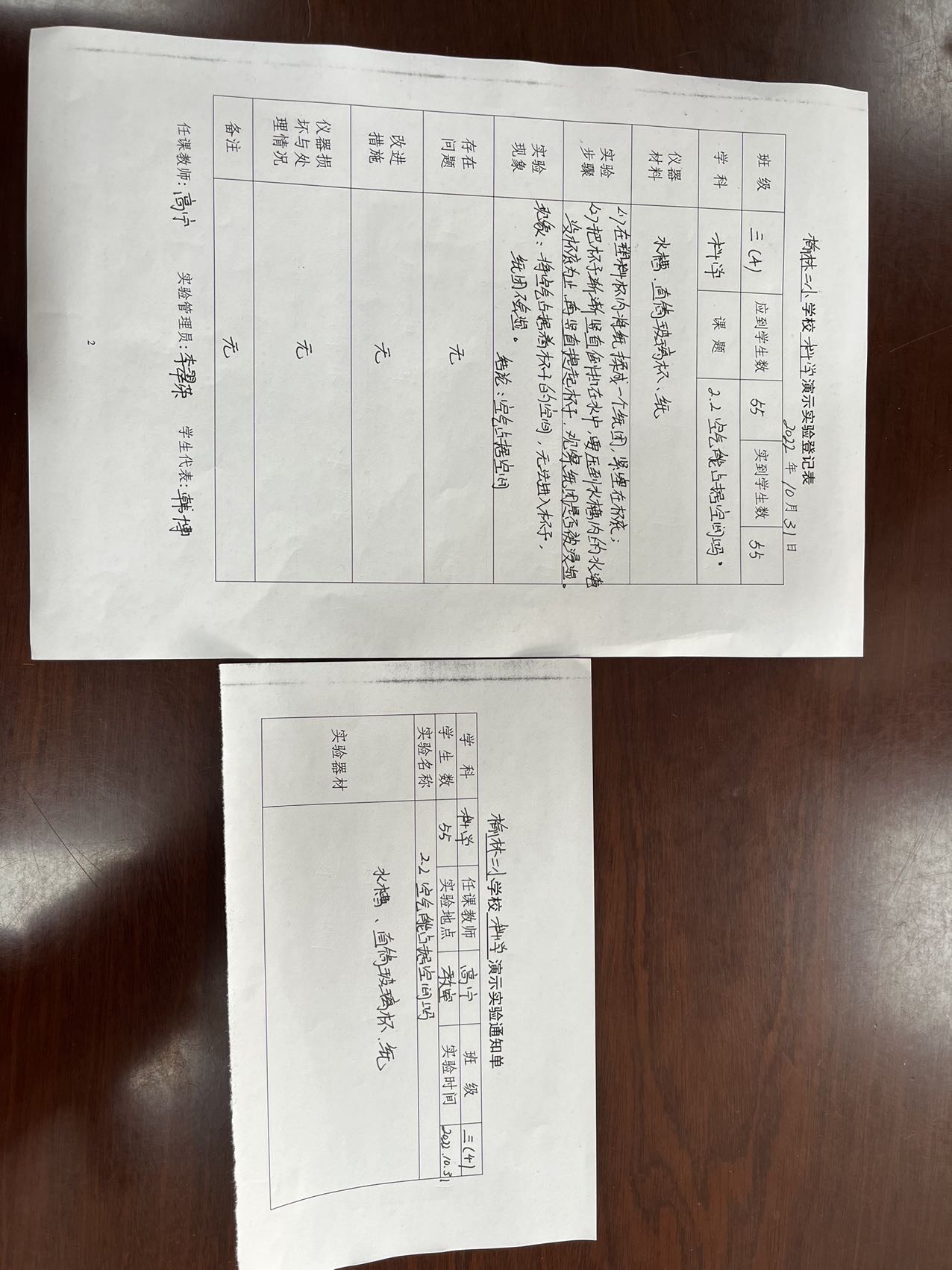 实验登记表