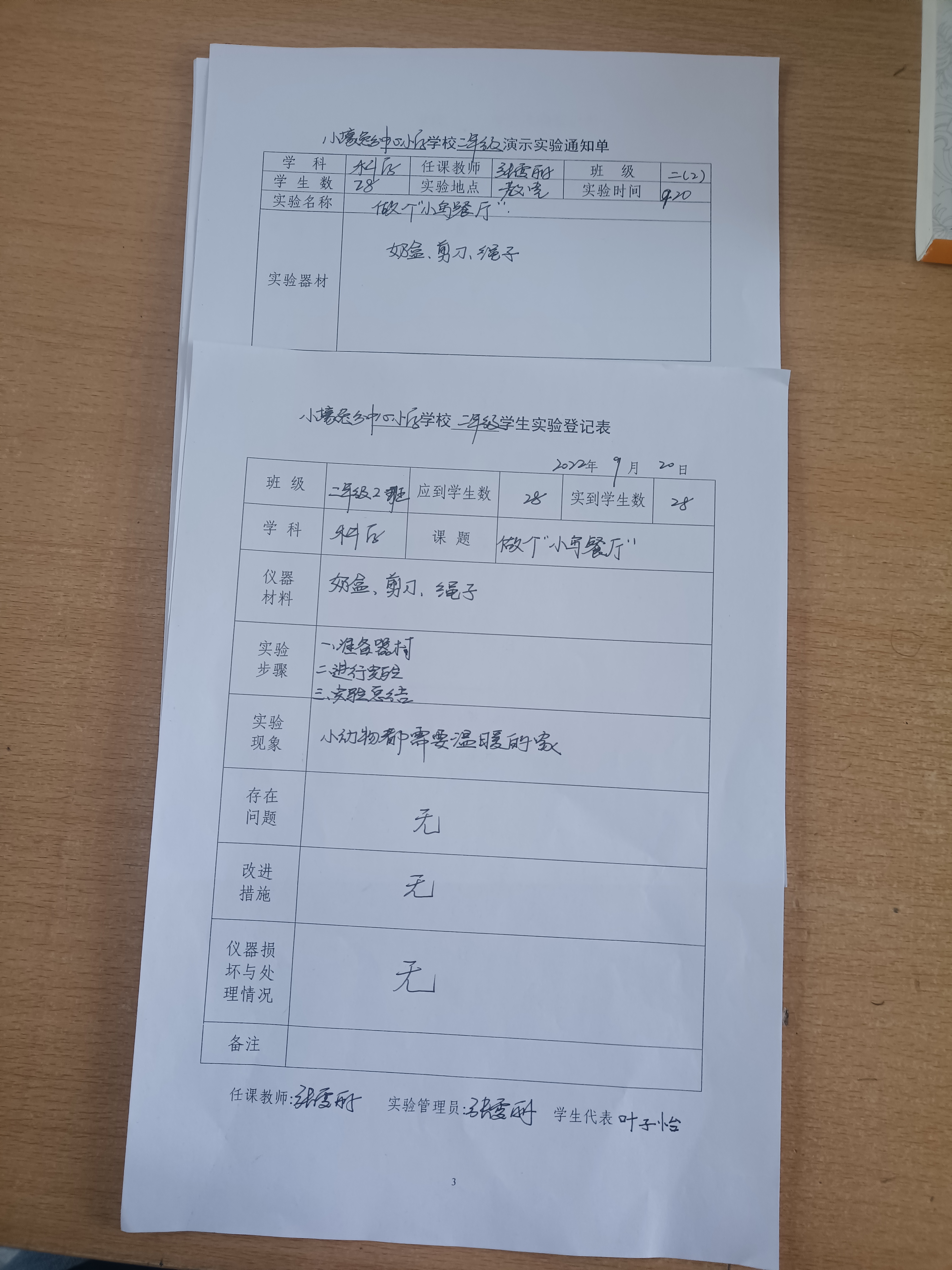 实验登记表