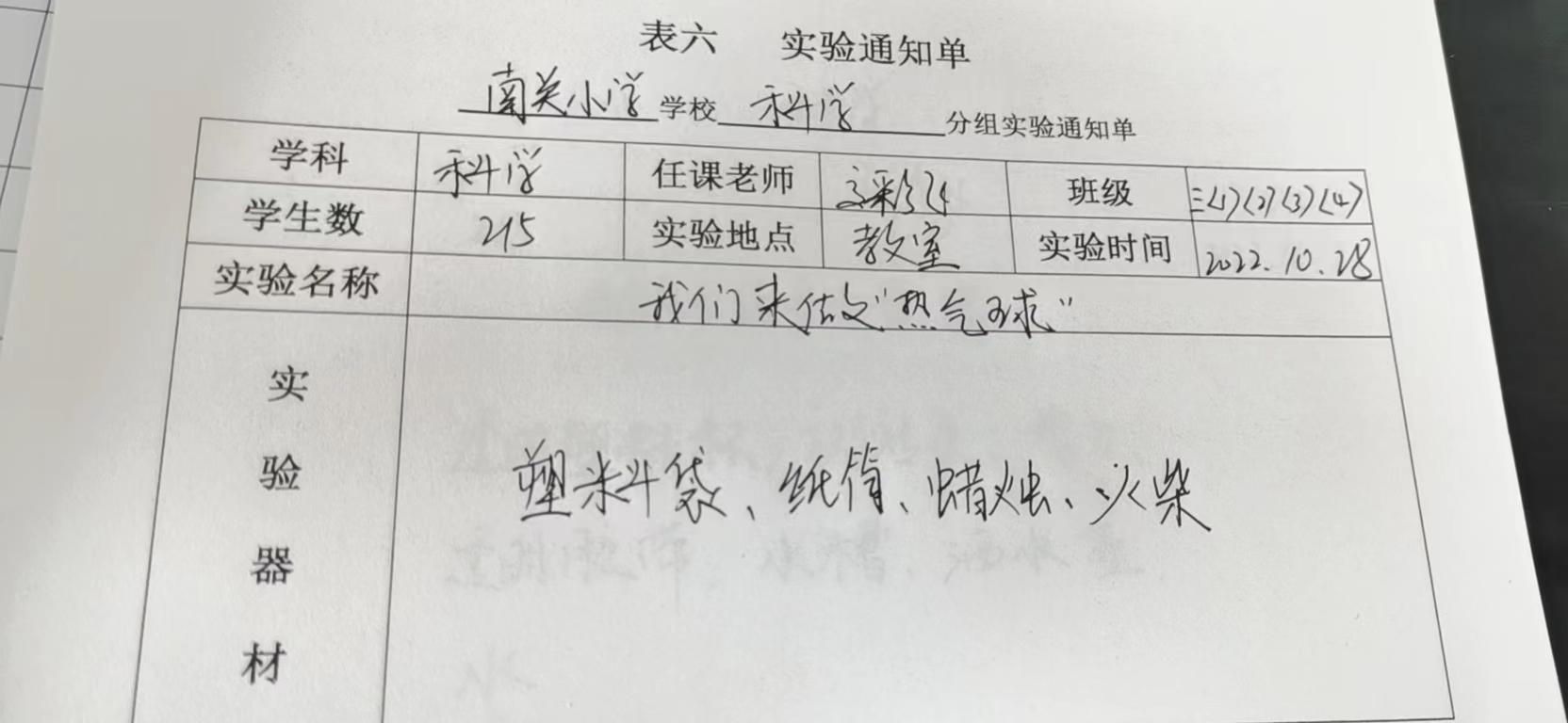 实验登记表