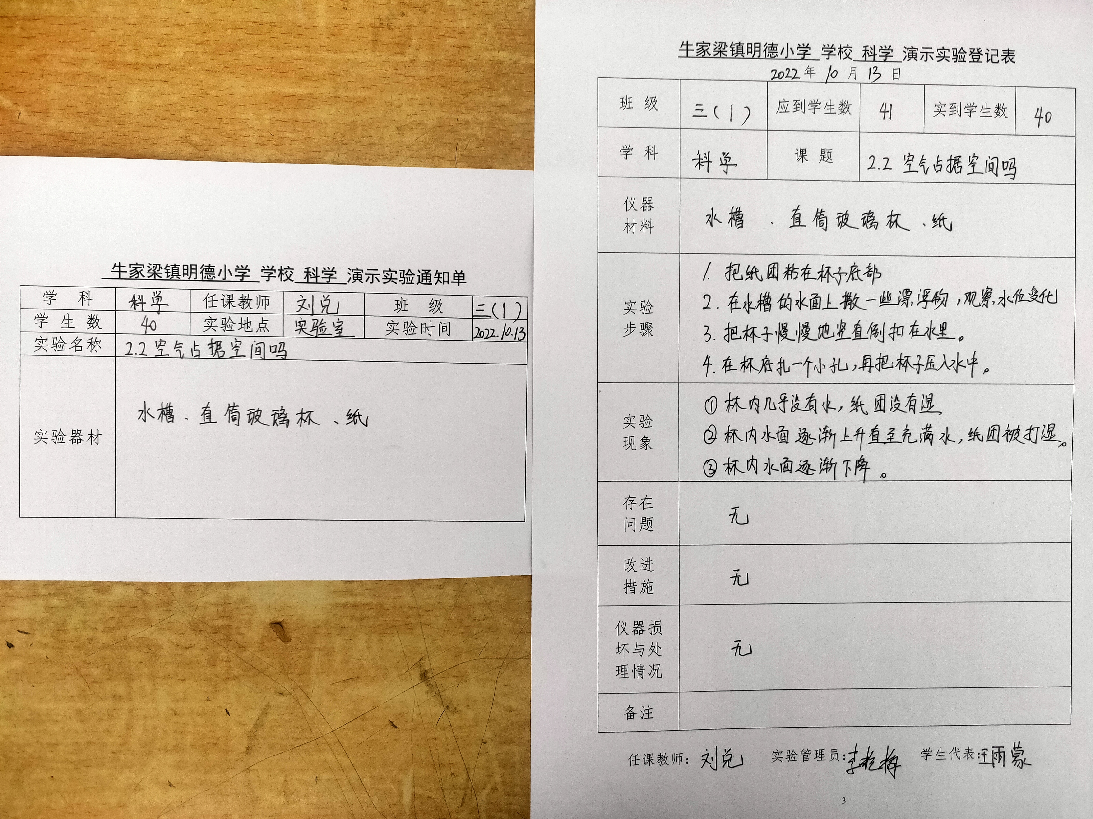 实验登记表