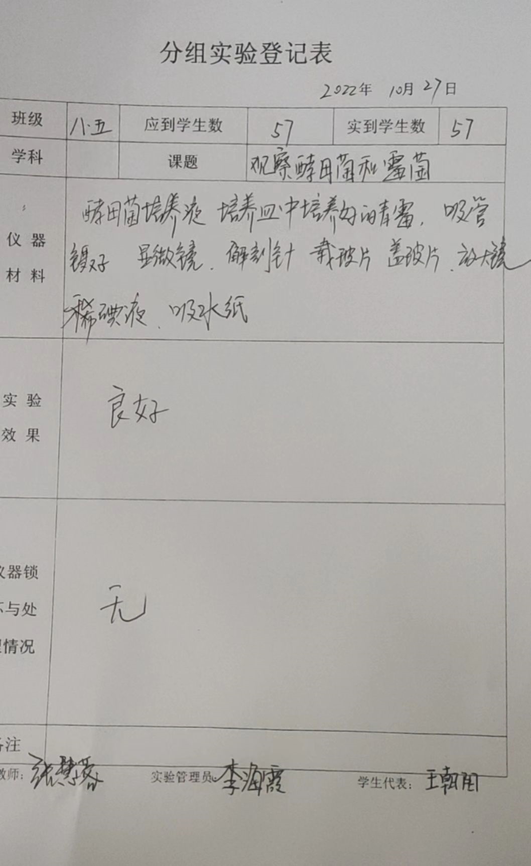 实验登记表