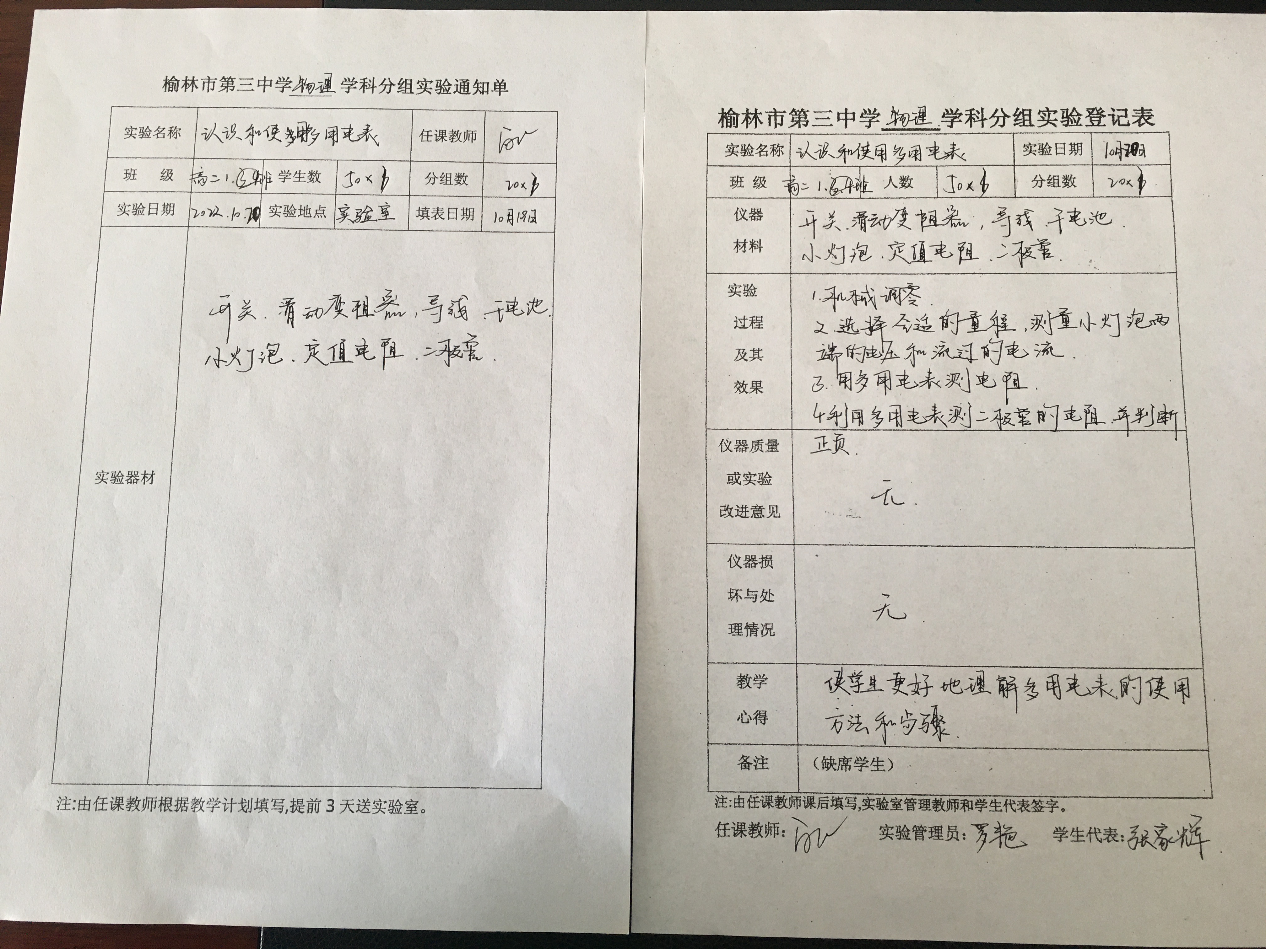 实验登记表