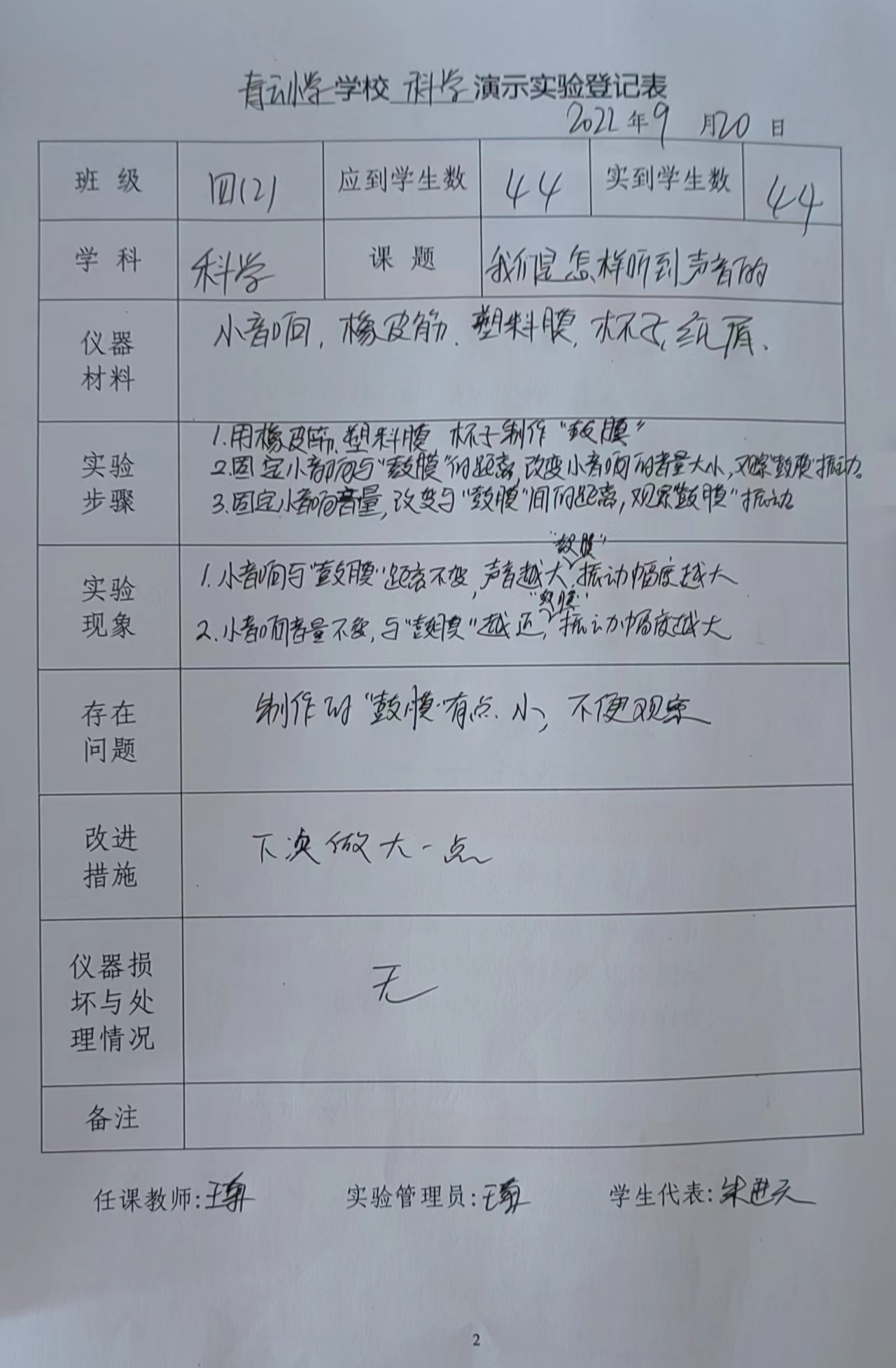 实验登记表