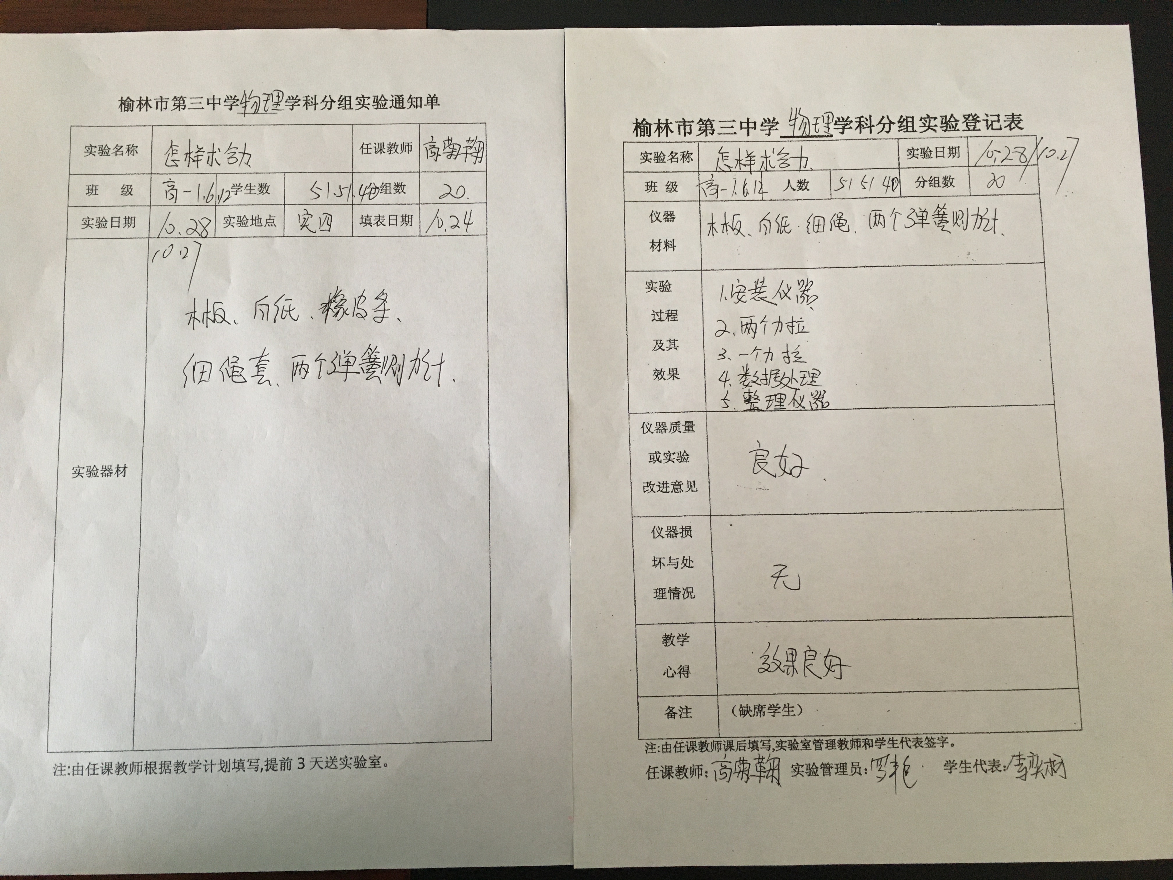 实验登记表