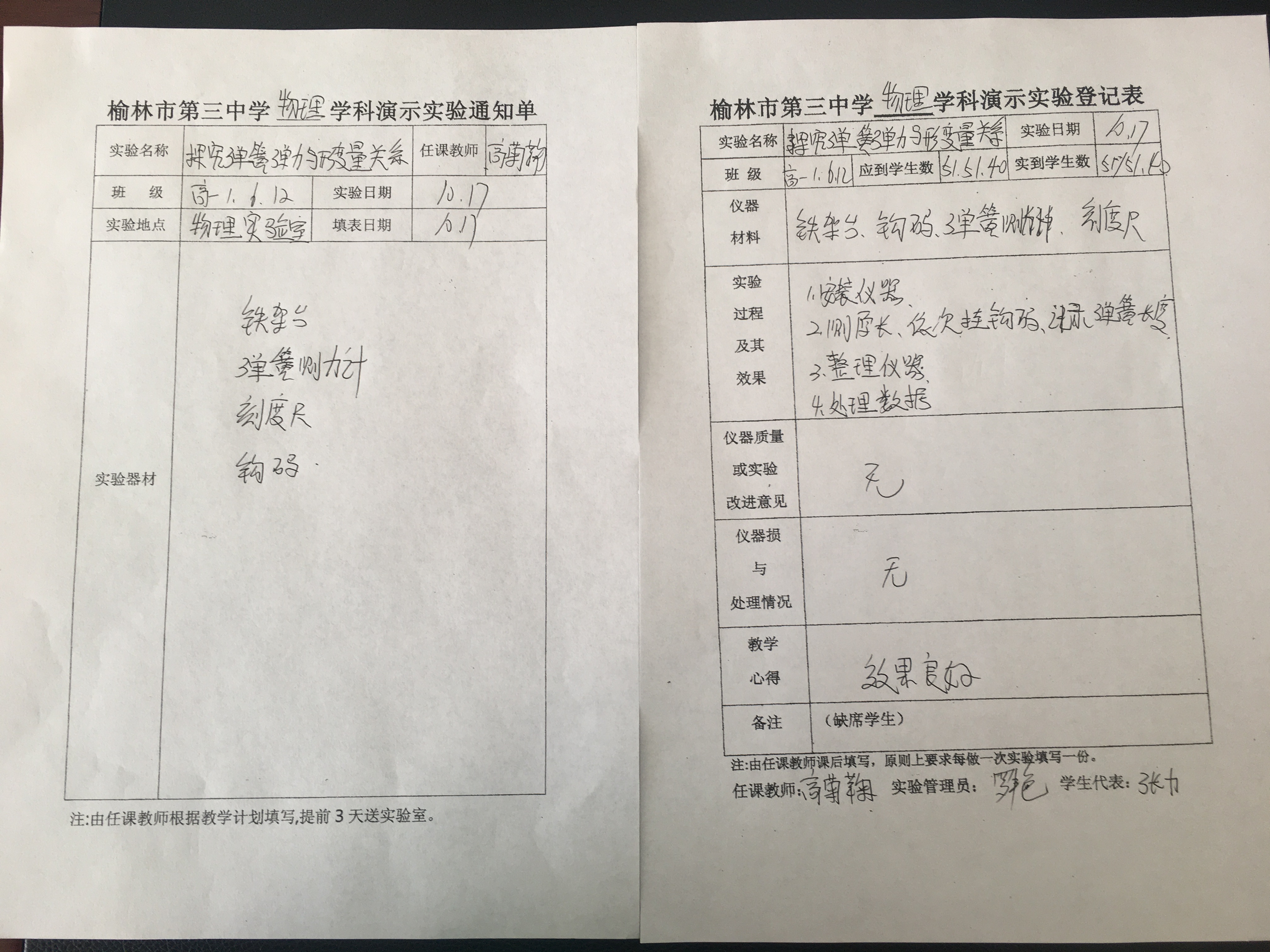 实验登记表
