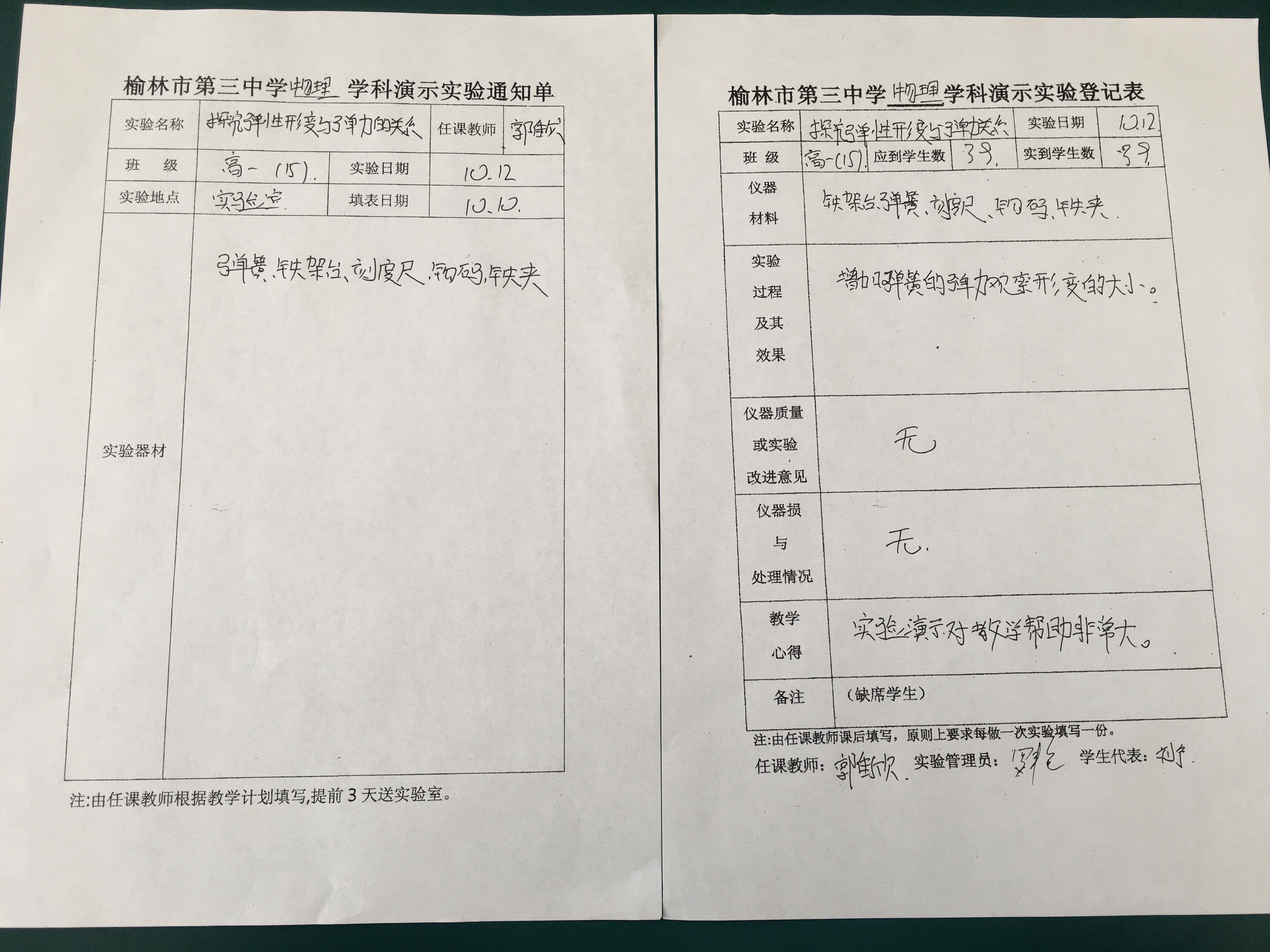 实验登记表