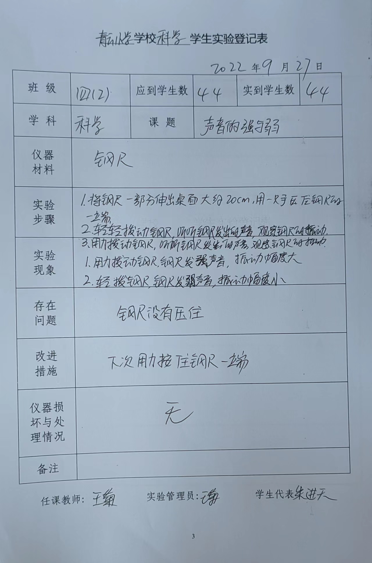 实验登记表