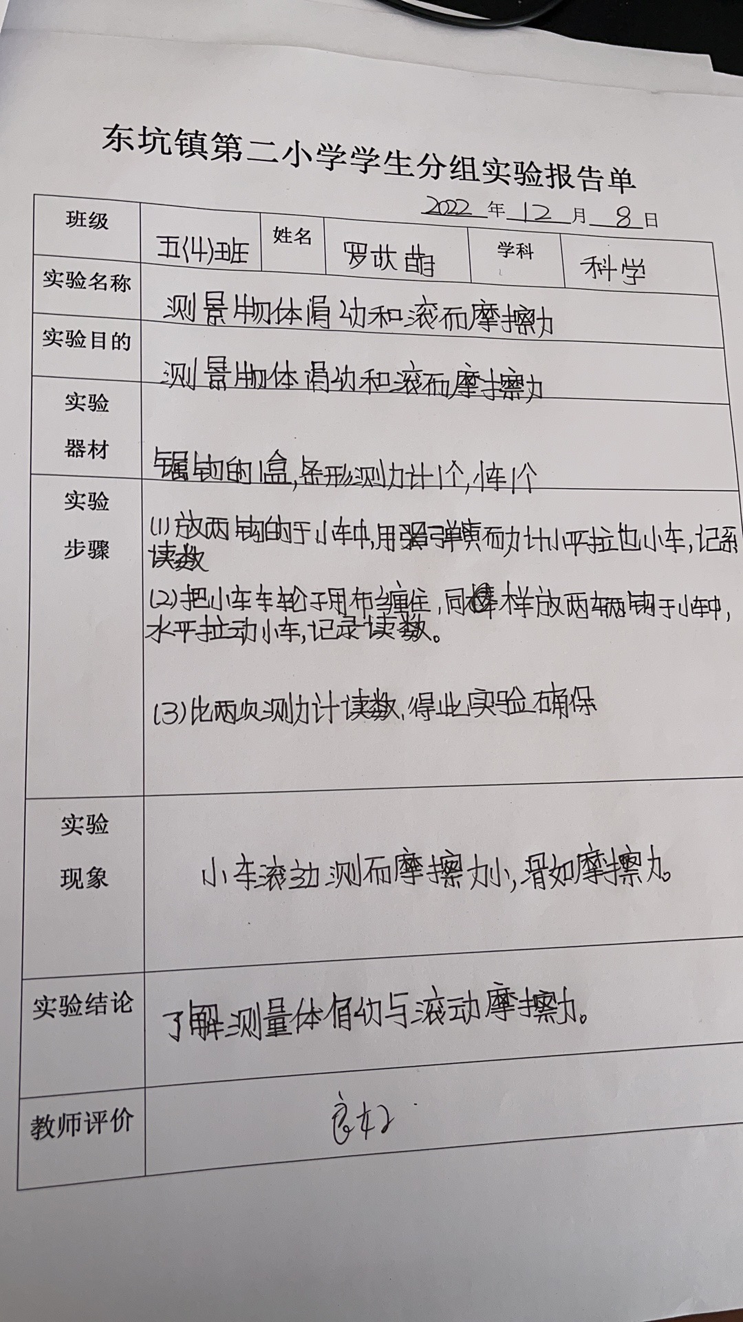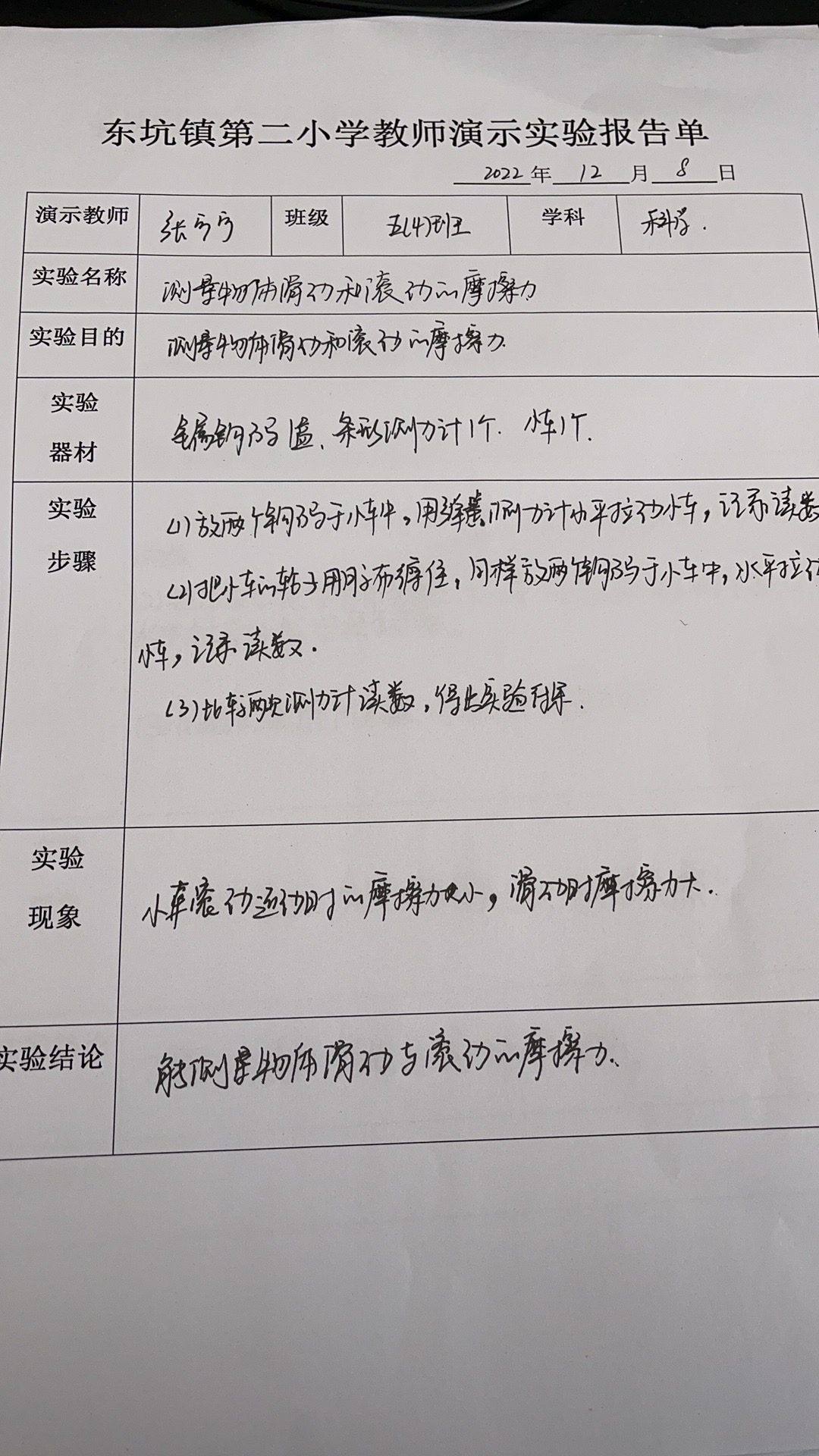 测量物体滑动与滚动的摩擦力
