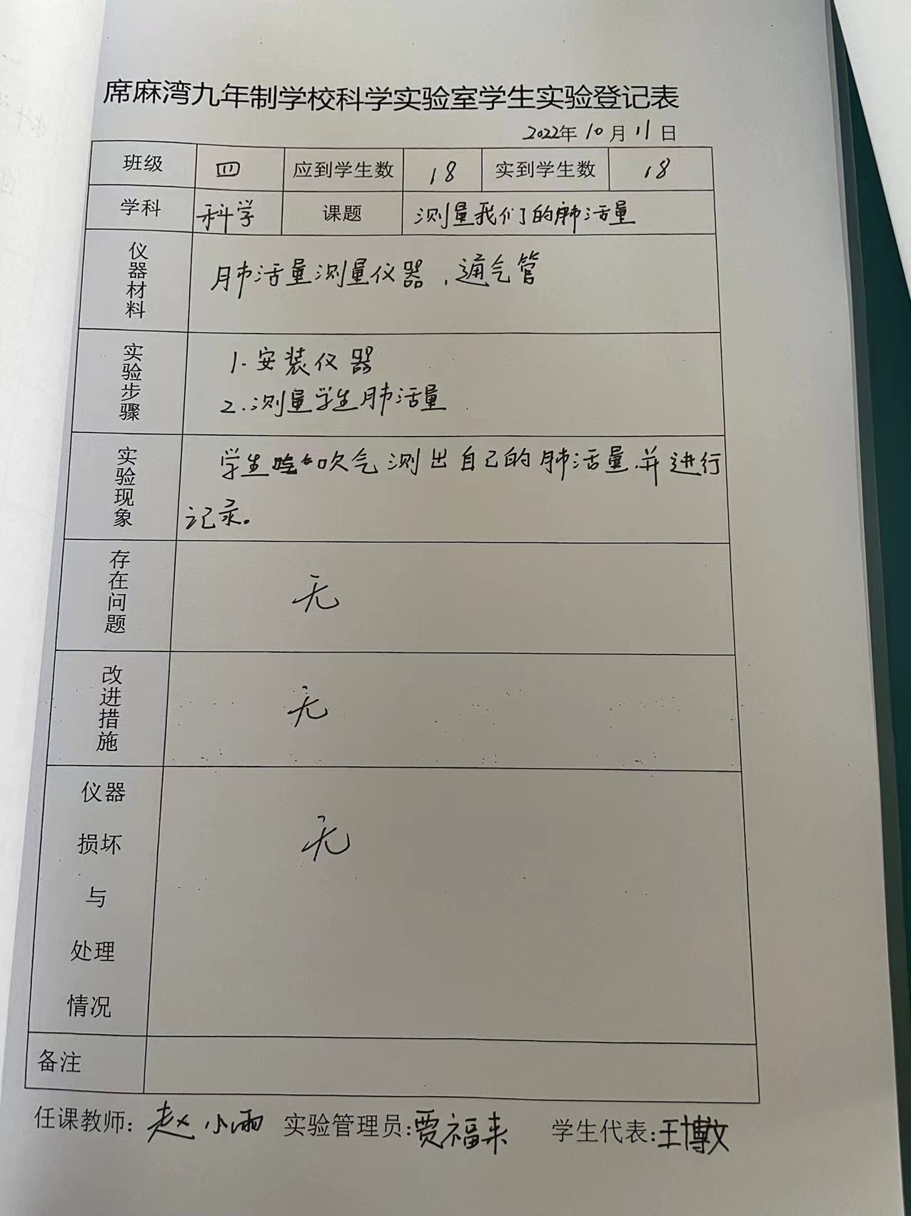 实验登记表