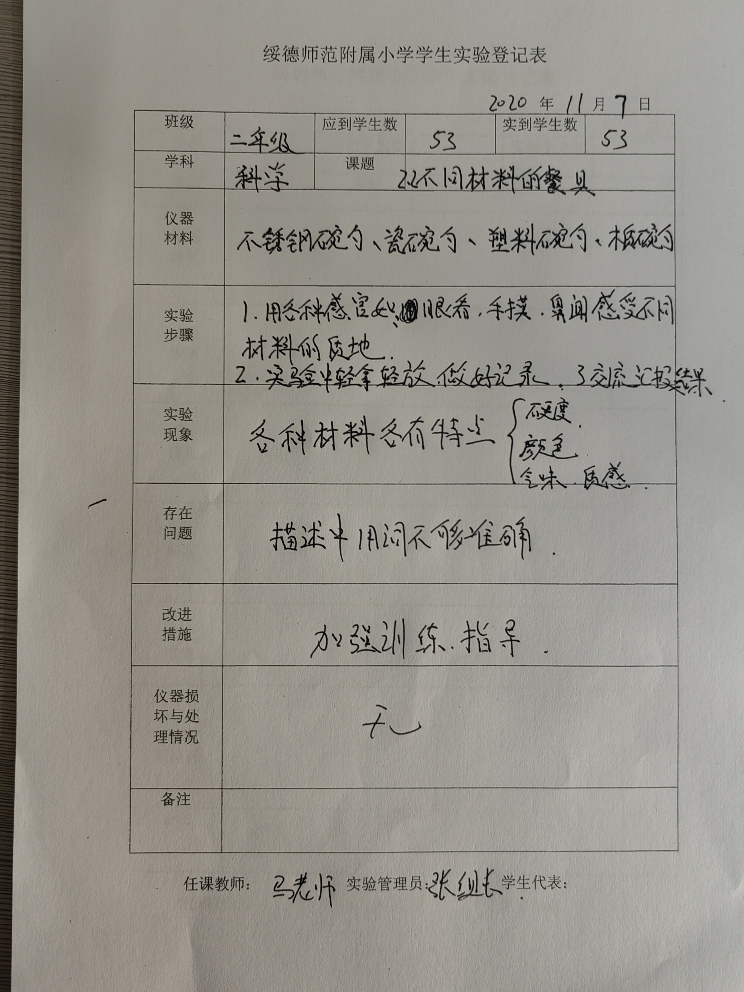 实验登记表