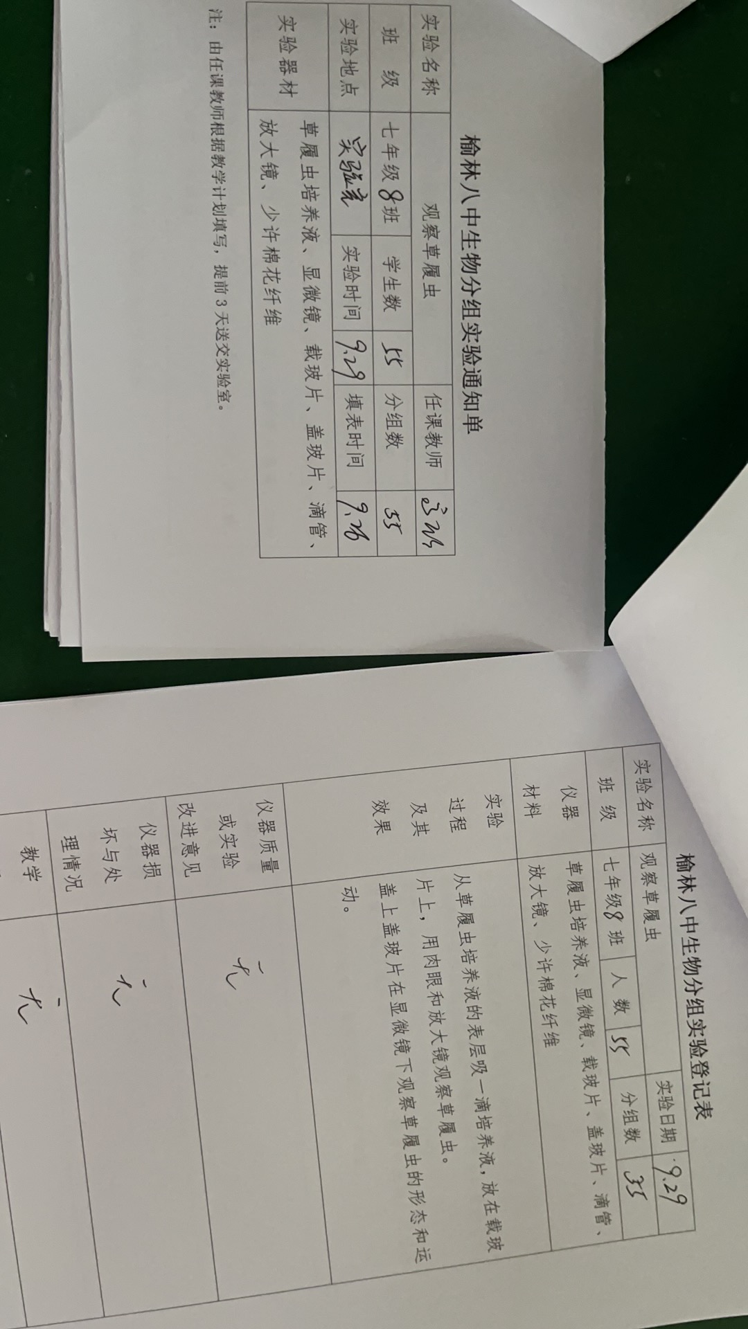 实验登记表