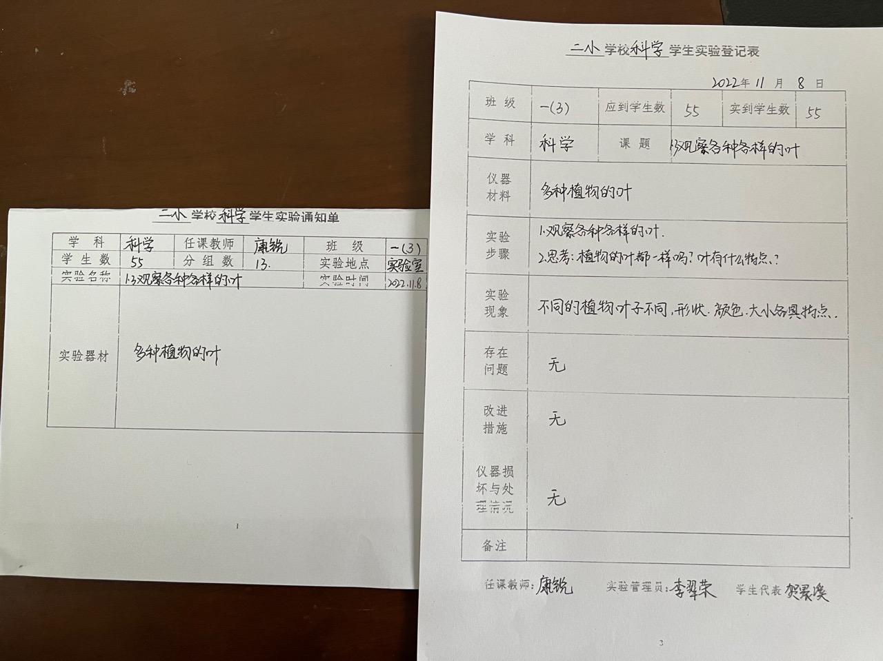 实验登记表