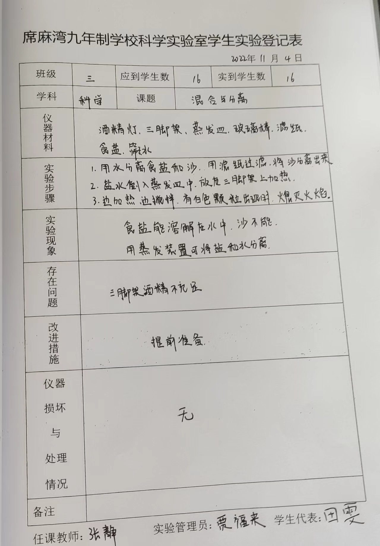实验登记表