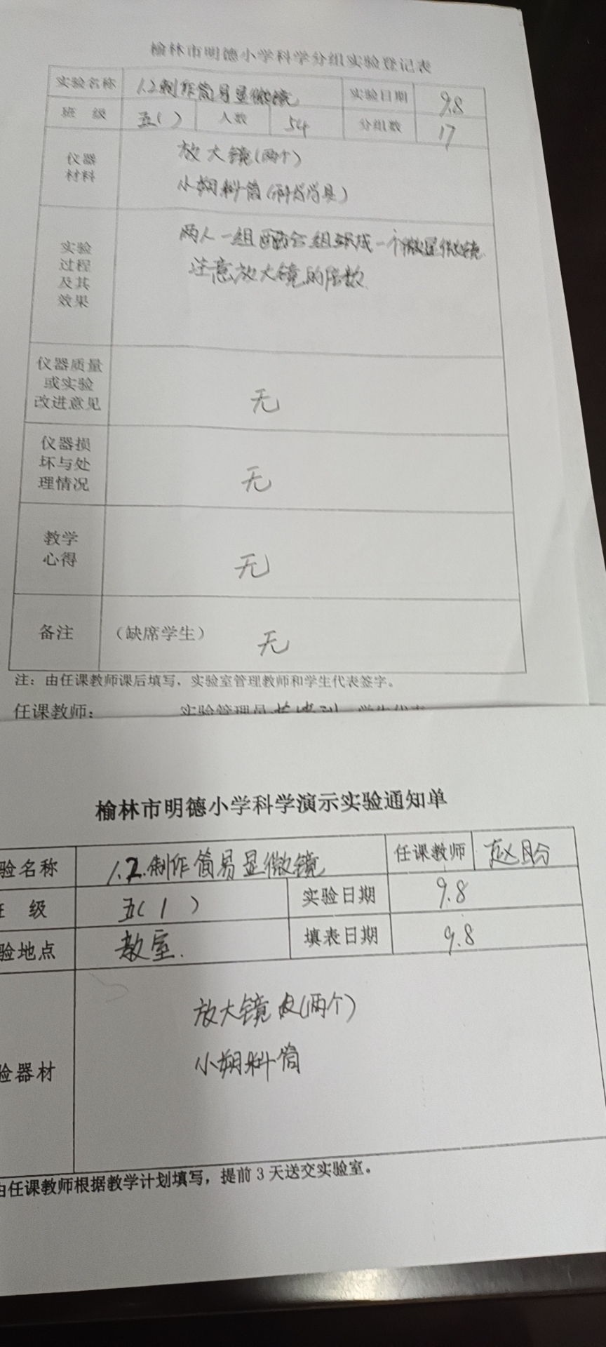 实验登记表