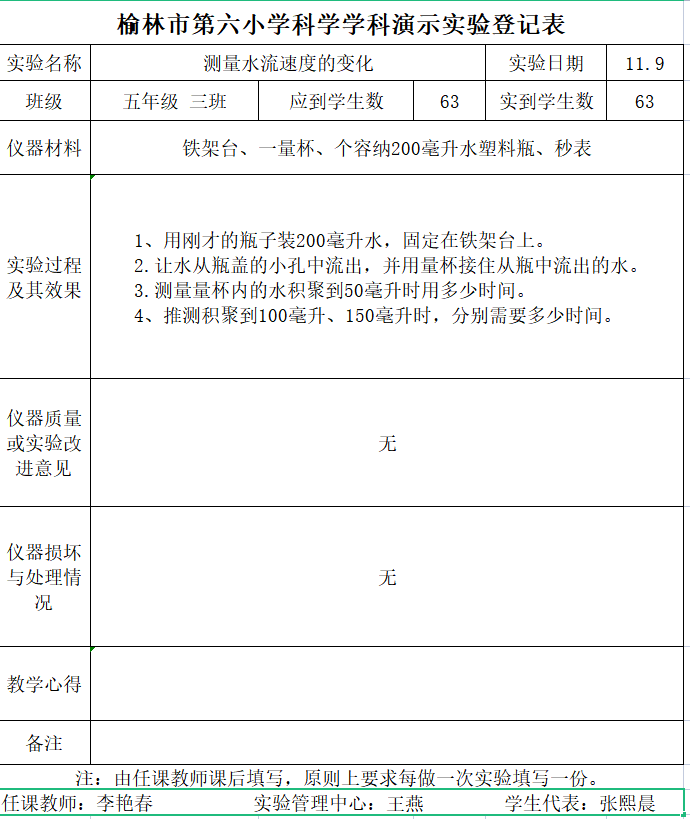 实验登记表