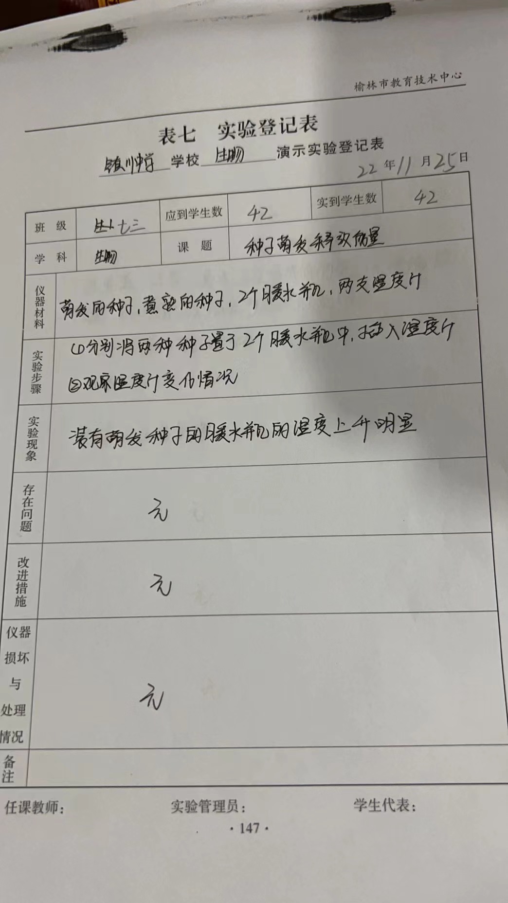 实验登记表
