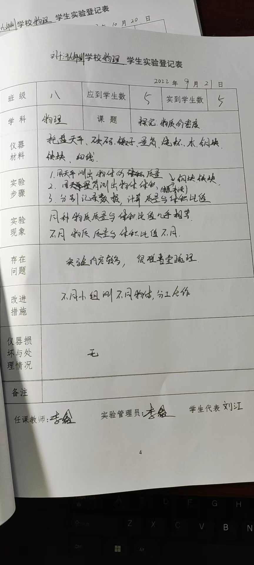 实验登记表