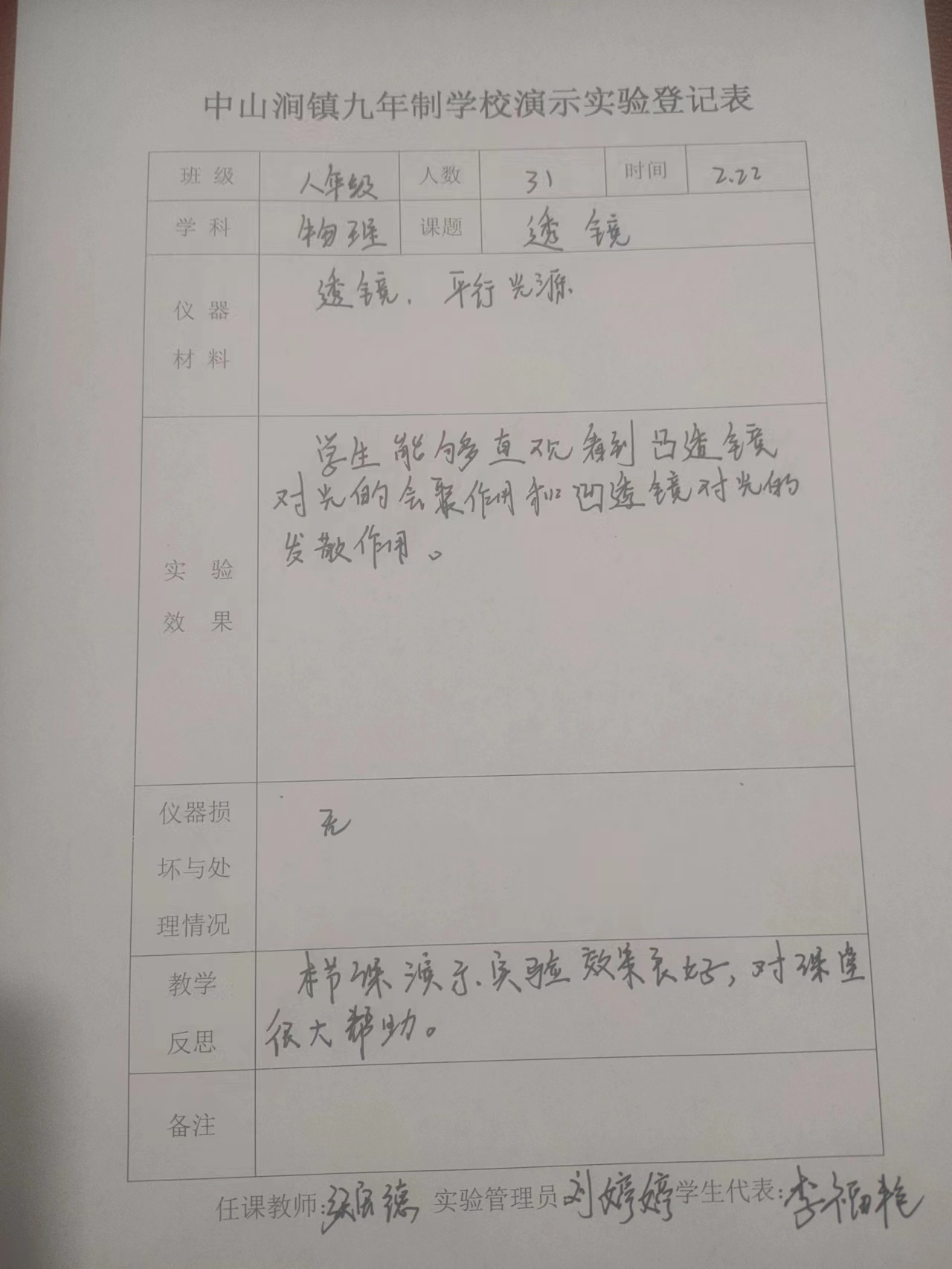 实验登记表