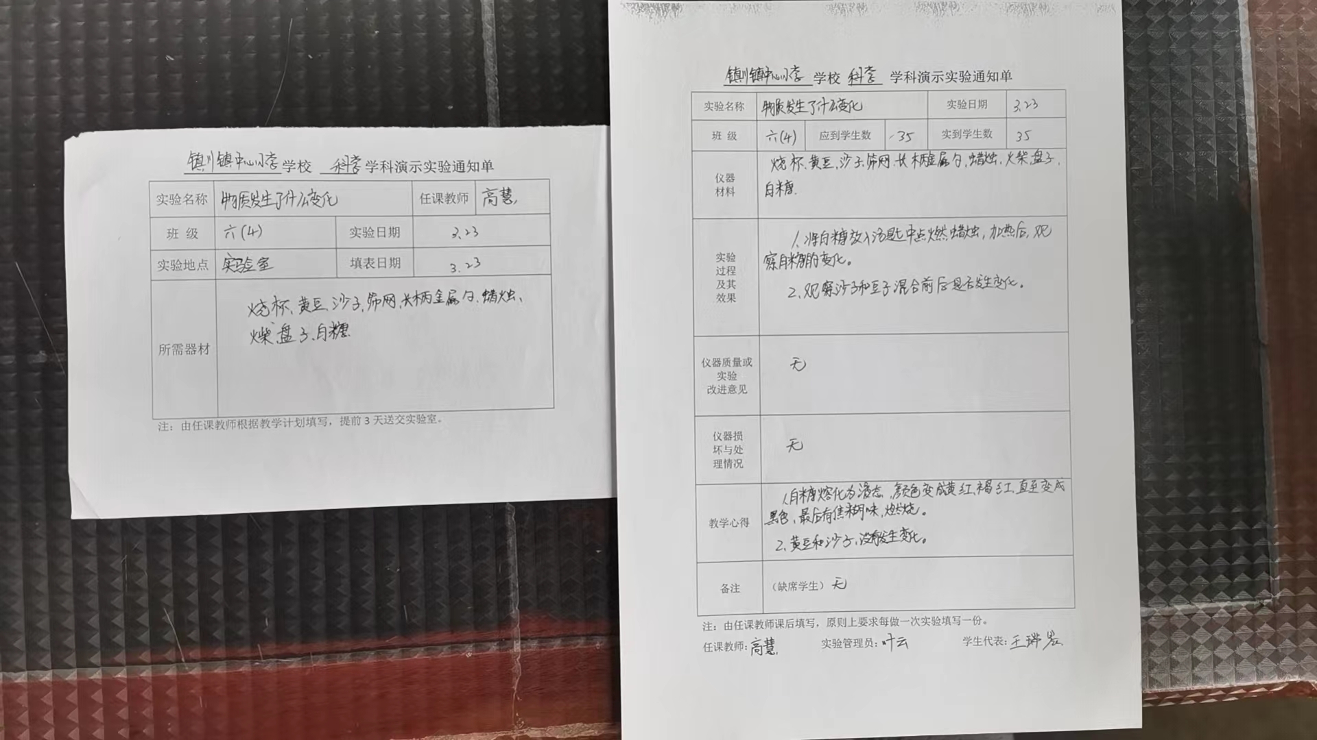实验登记表