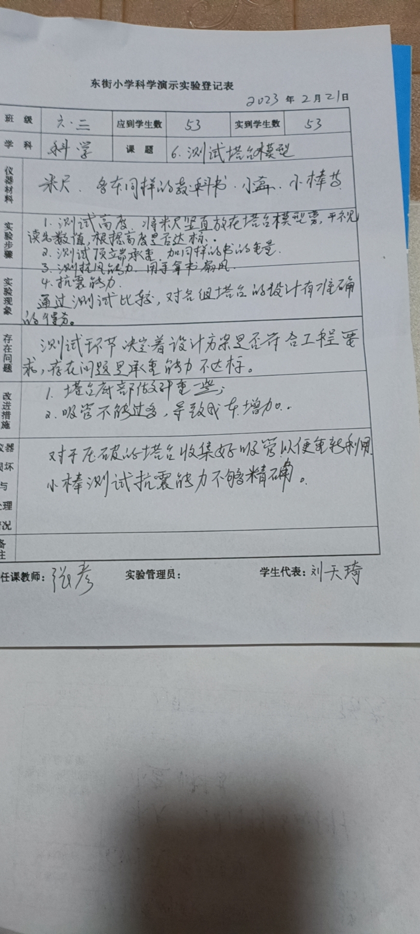 实验登记表