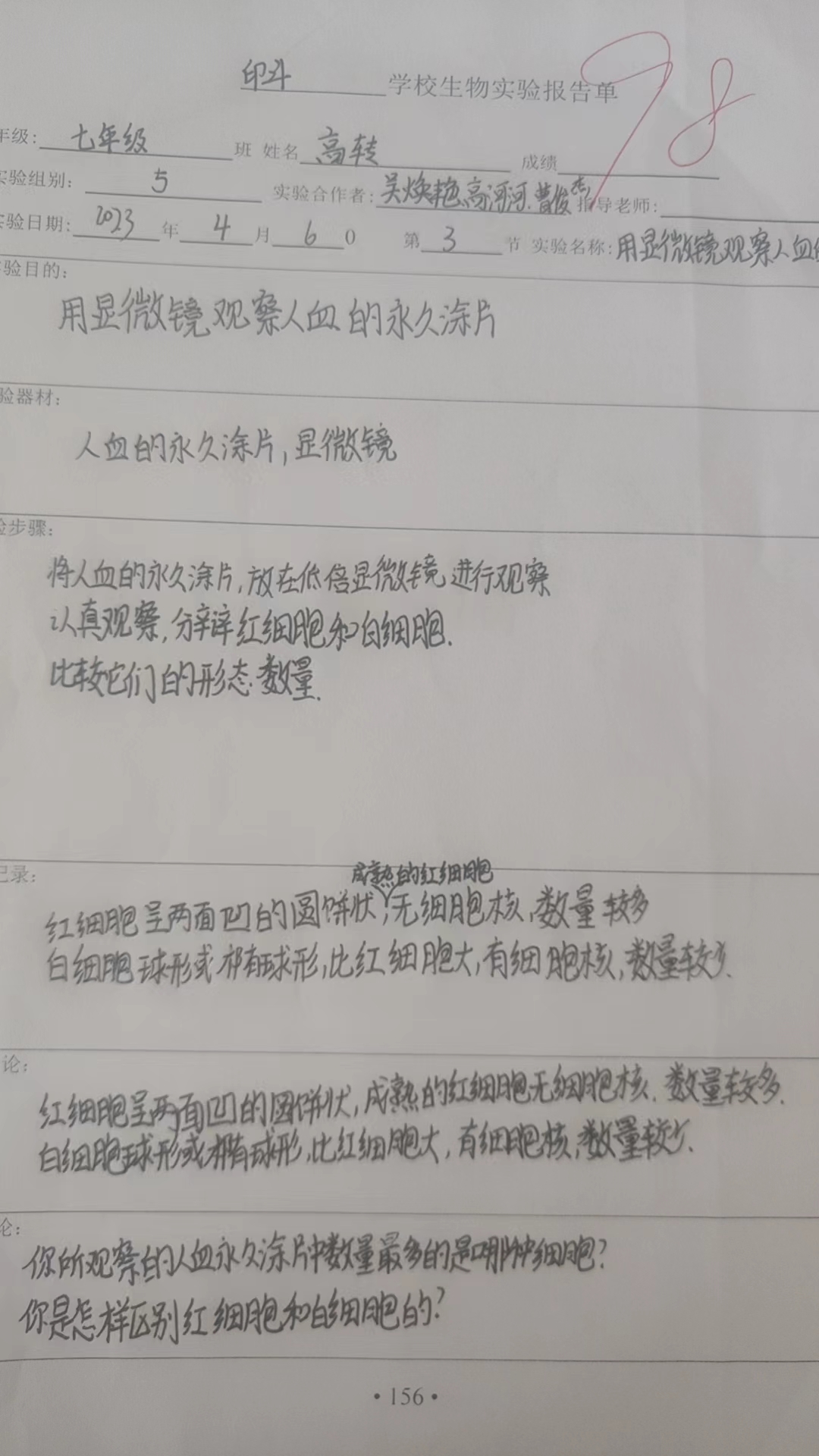用显微镜观察人血的永久涂片