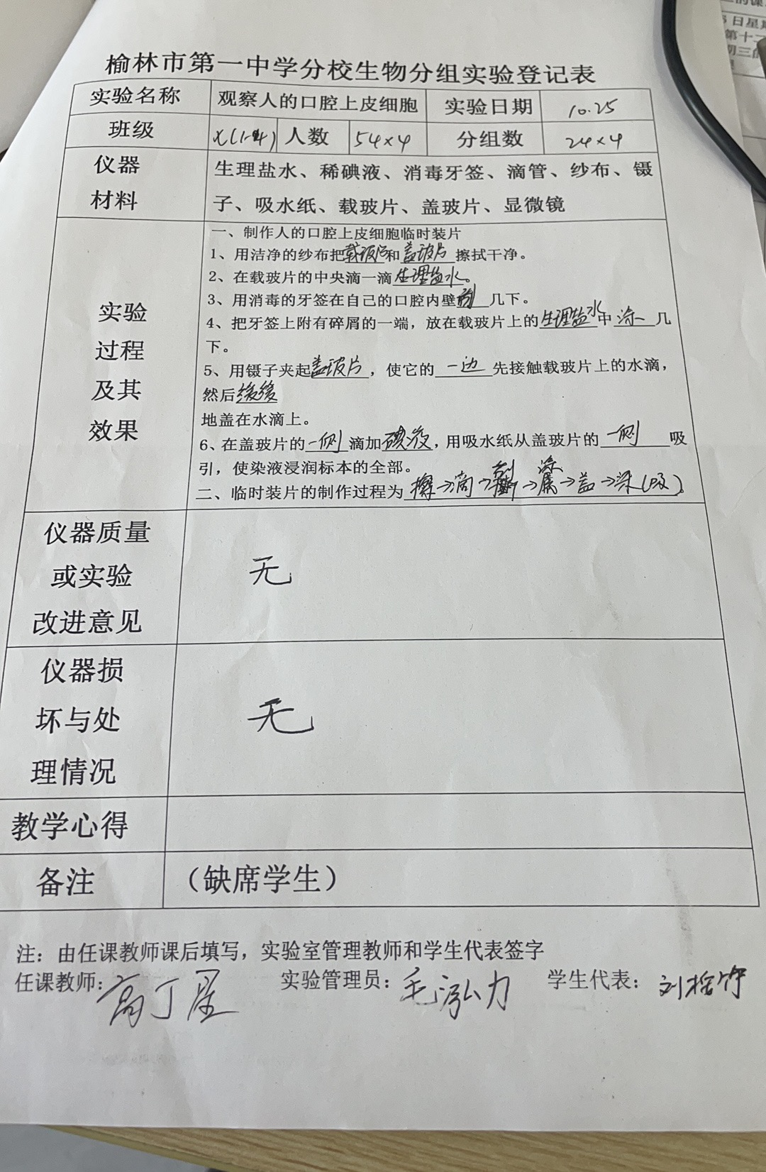观察人的口腔上皮细胞