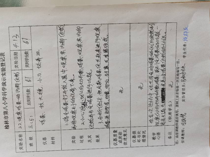 实验登记表
