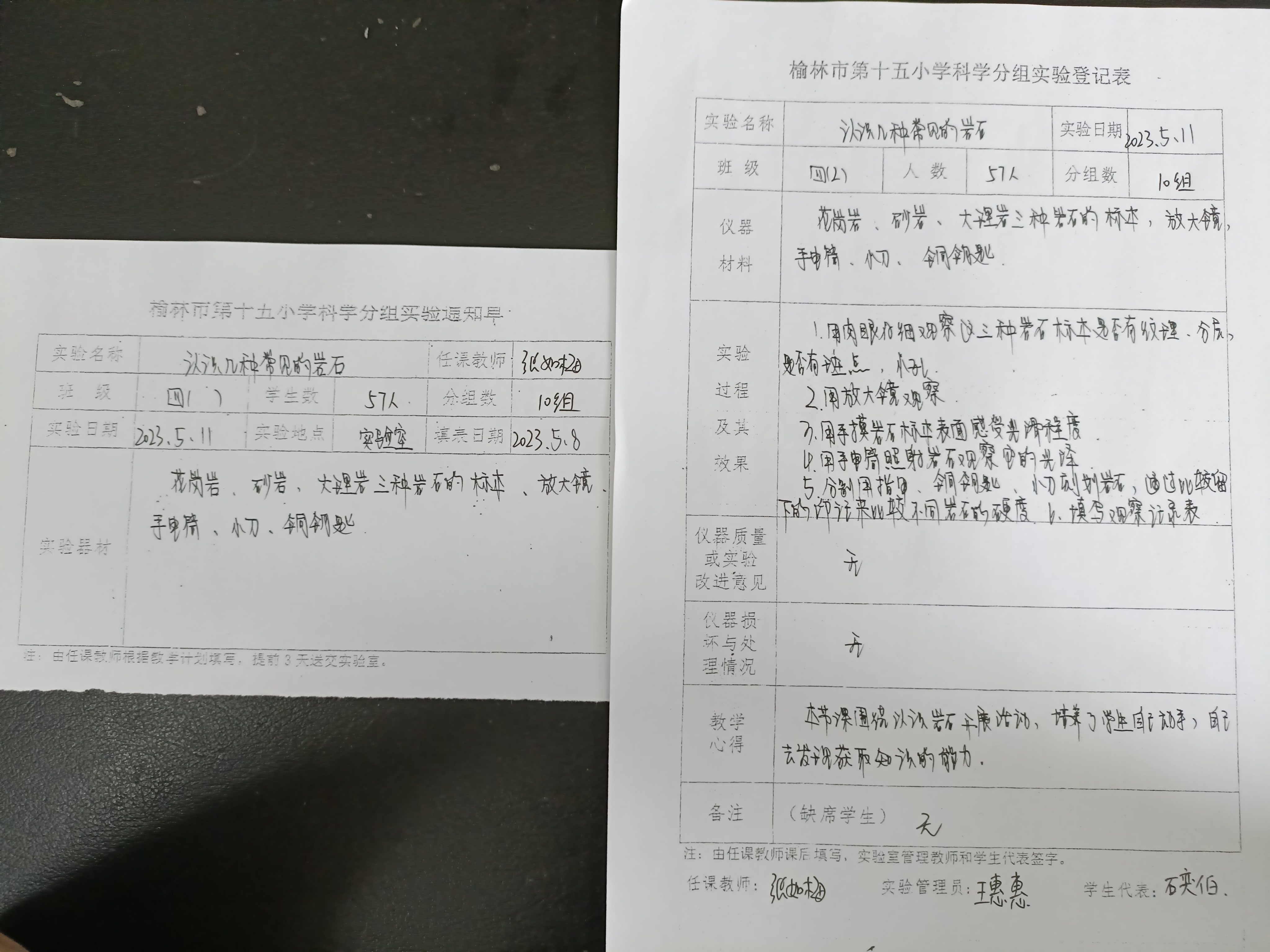 实验登记表