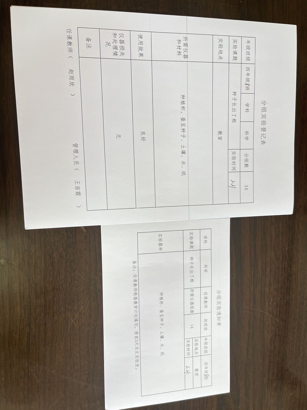 实验登记表