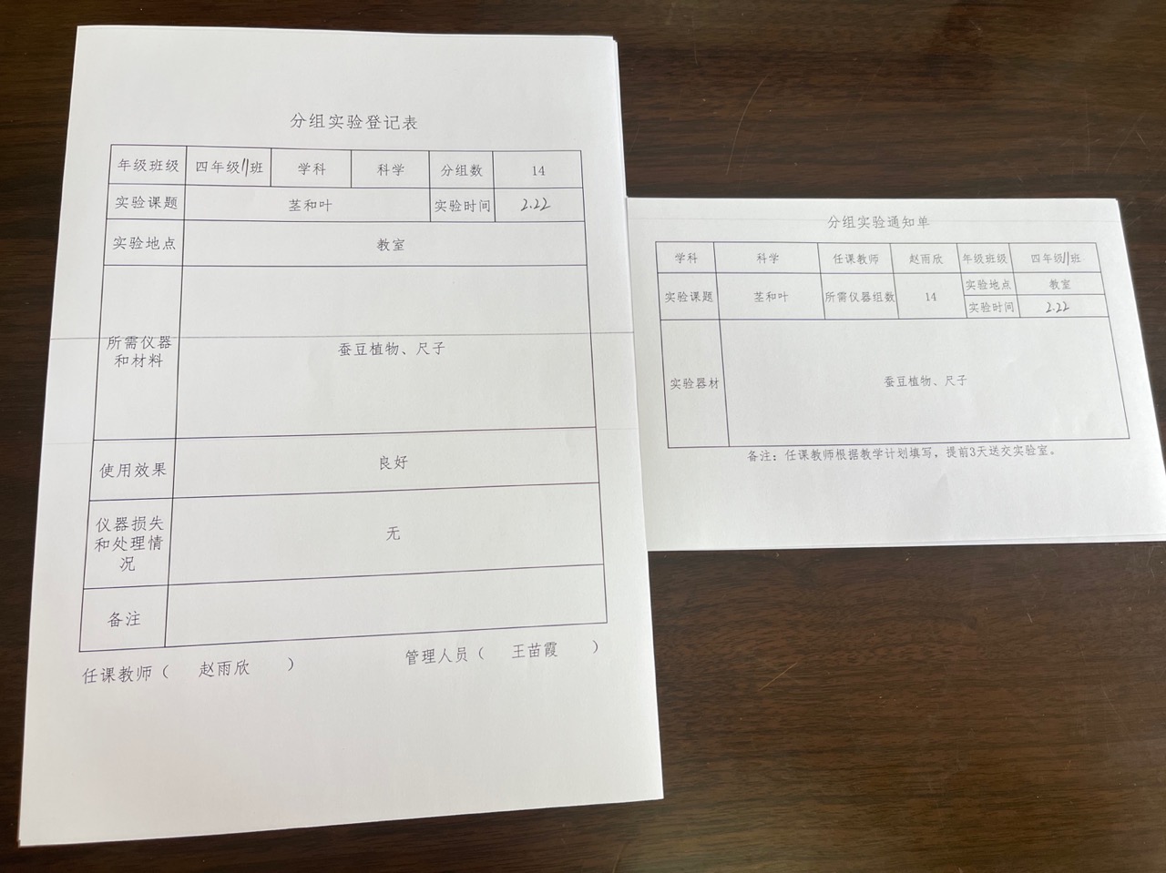 实验登记表