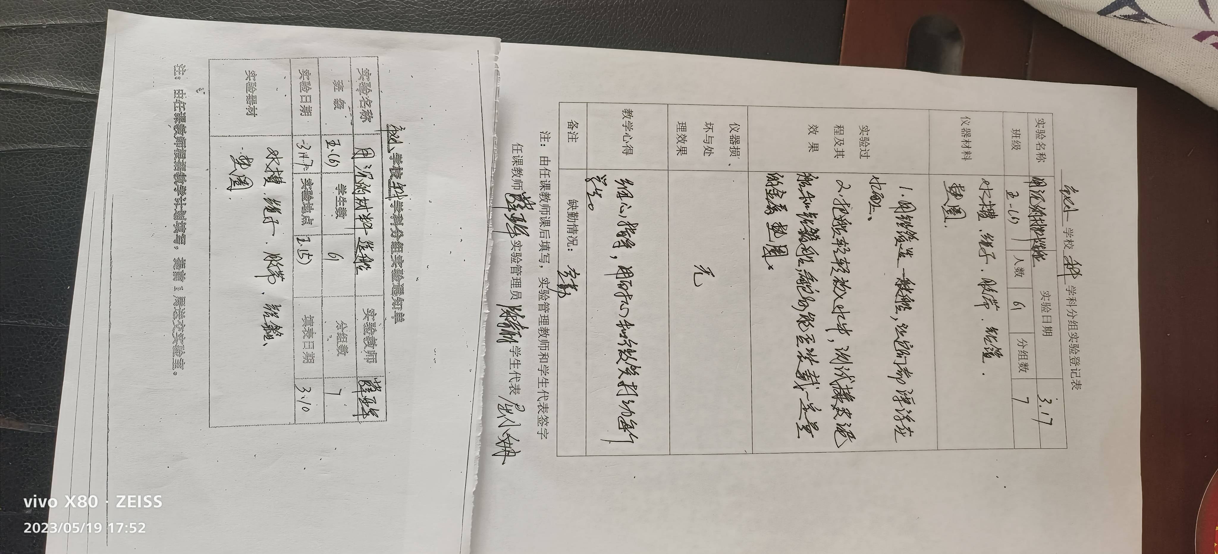 实验登记表