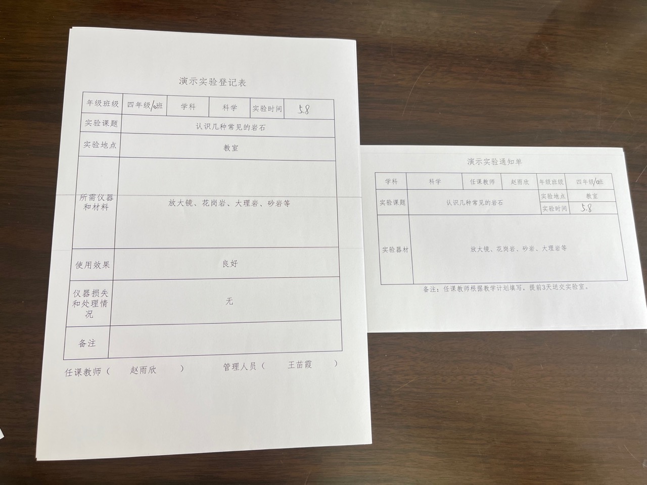 实验登记表