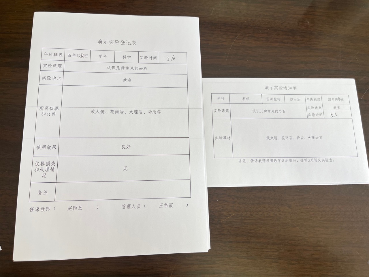 实验登记表