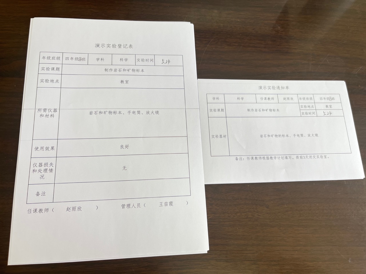 实验登记表