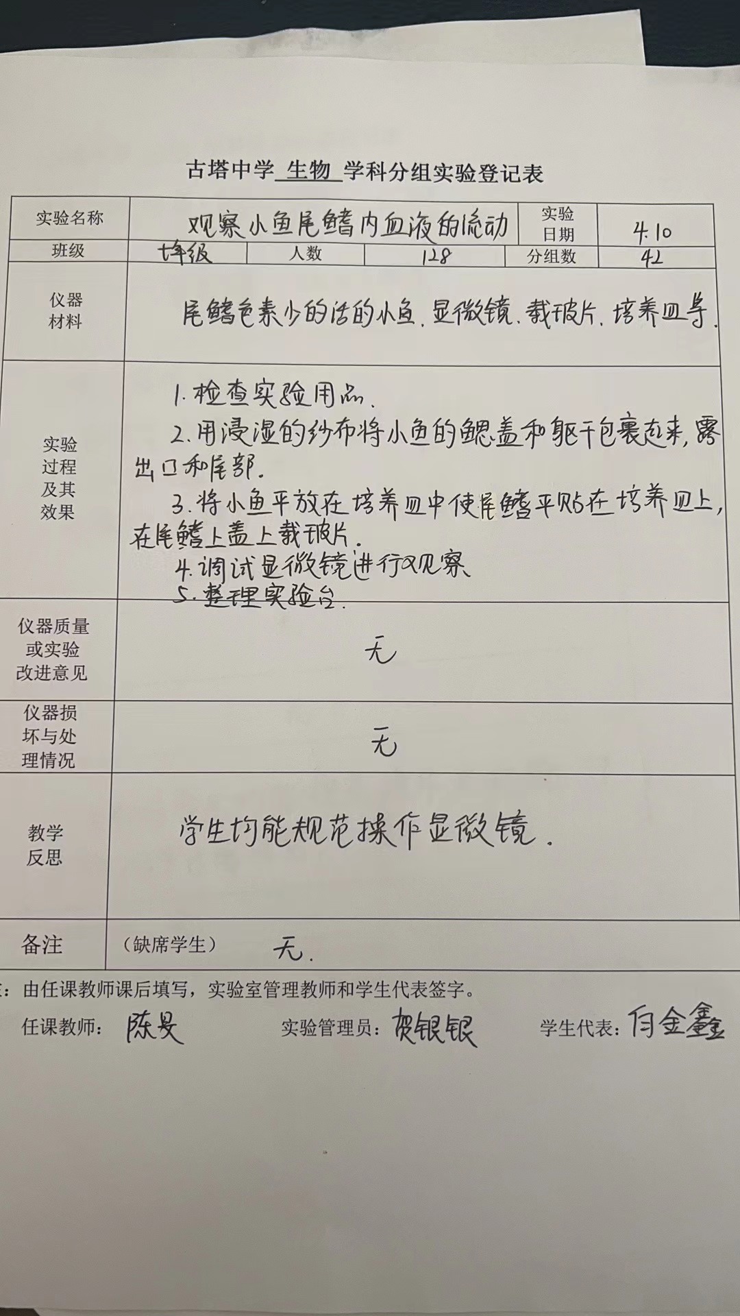 实验登记表