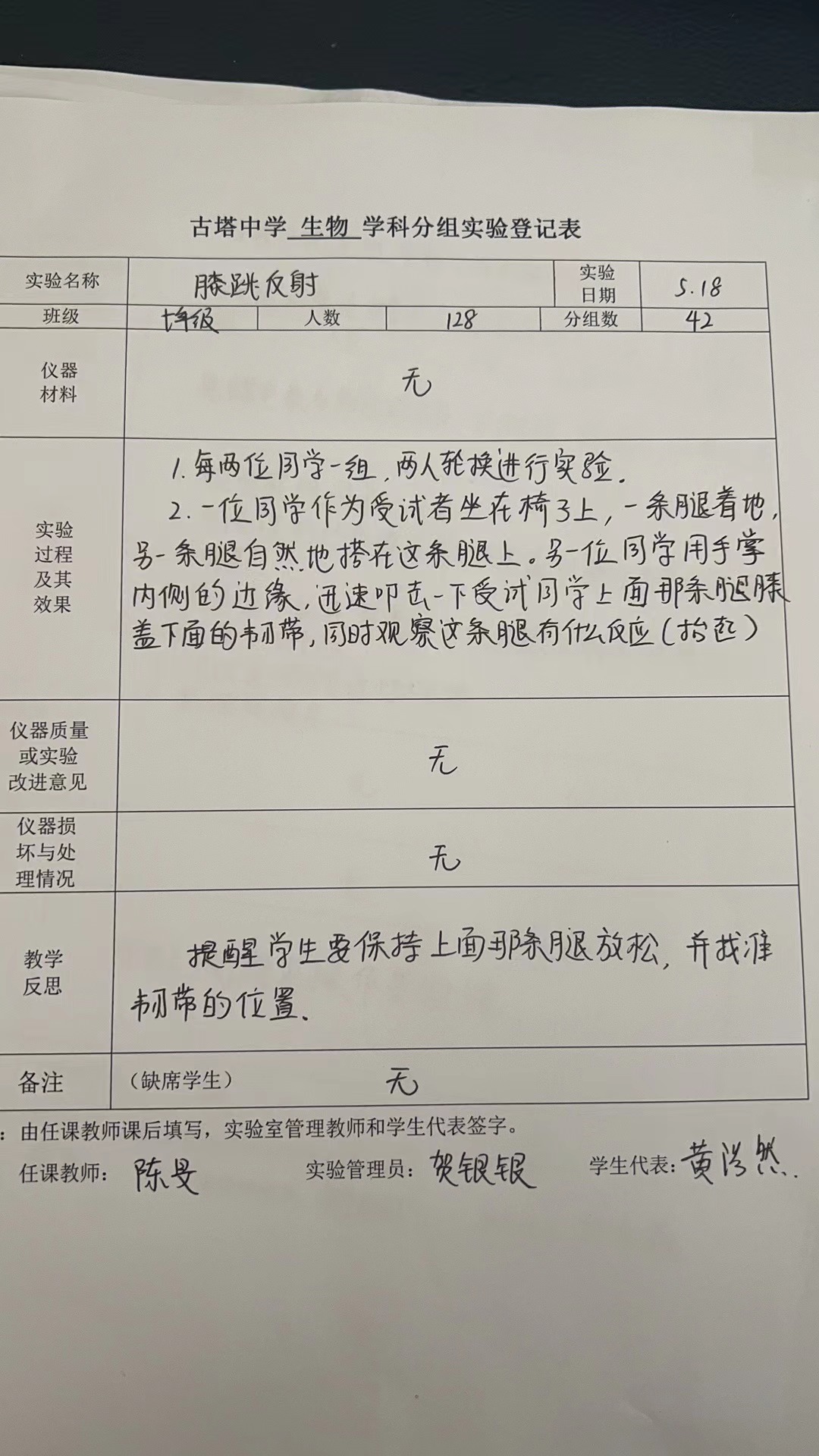 实验登记表