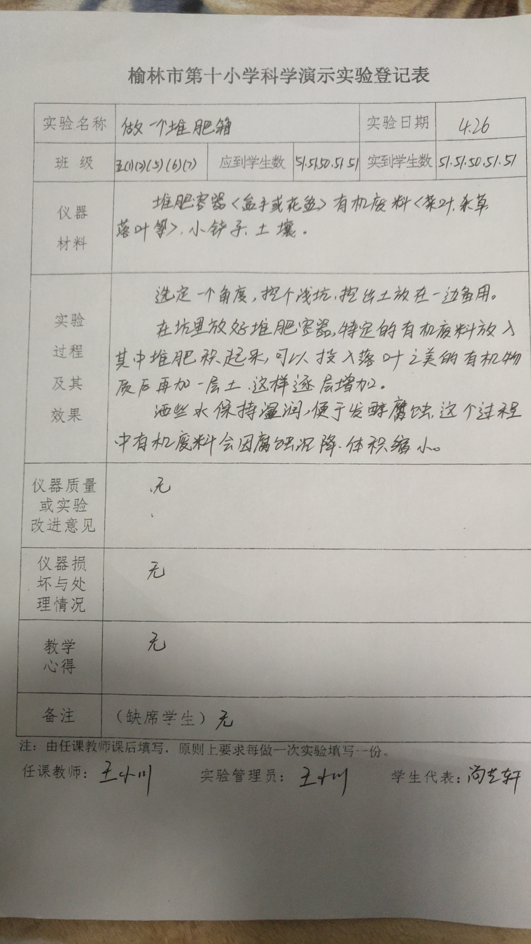 实验登记表