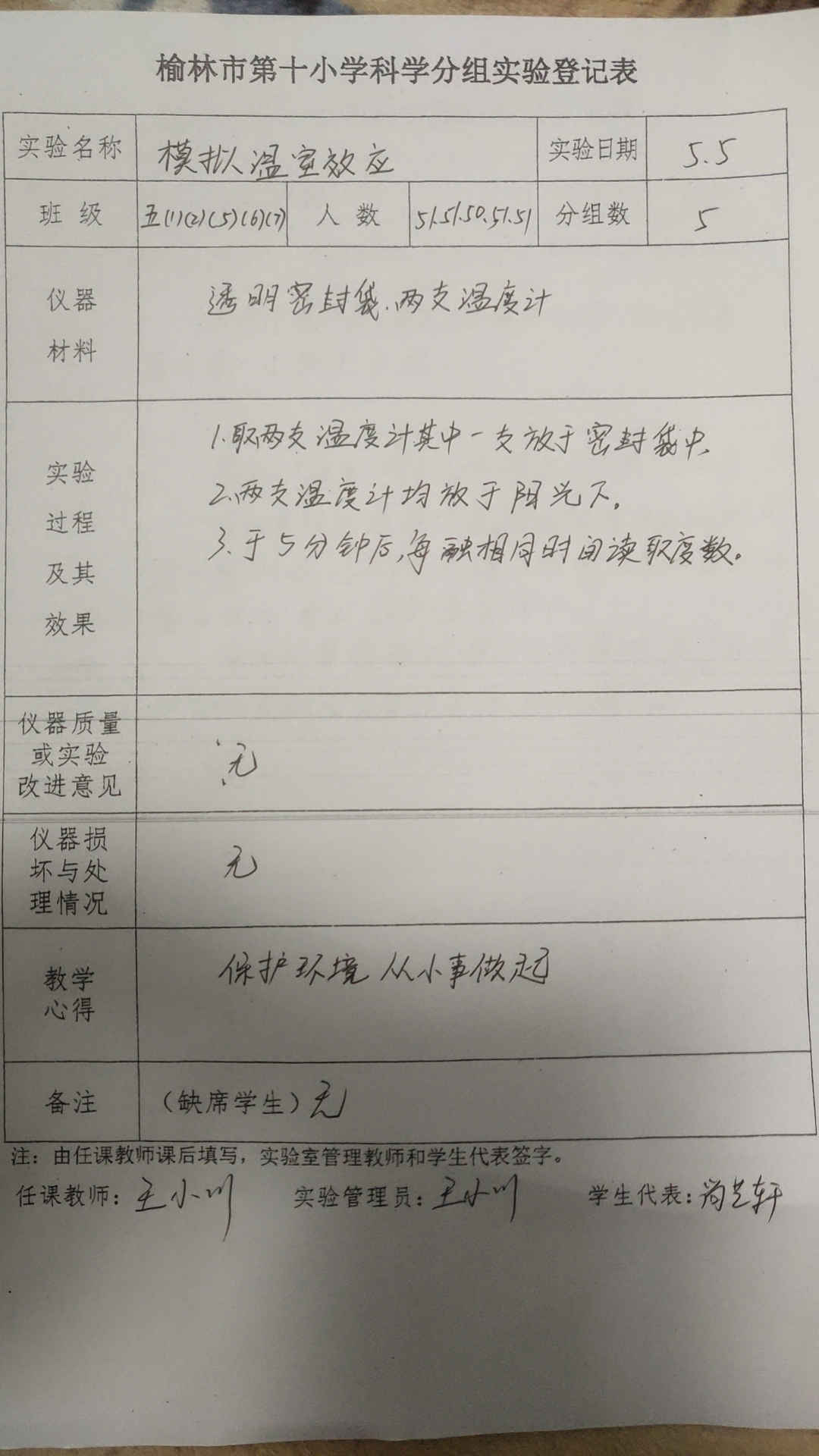 实验登记表