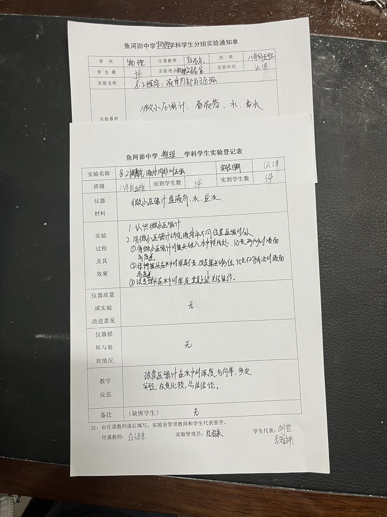 实验登记表