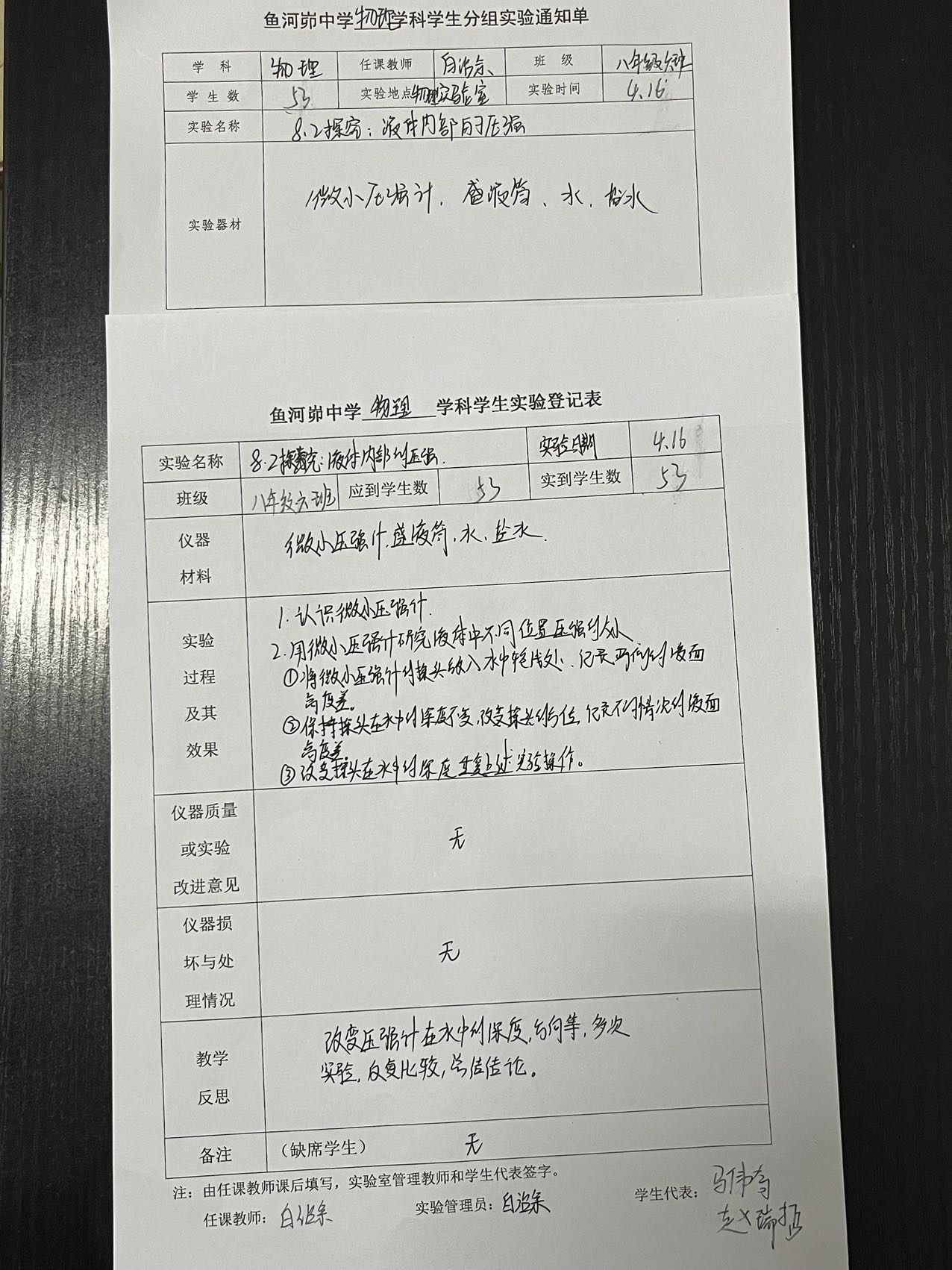 实验登记表