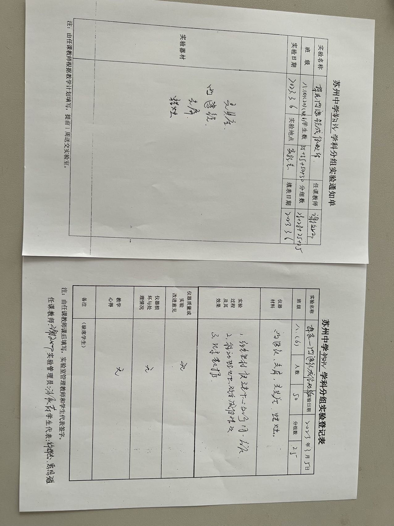 实验登记表