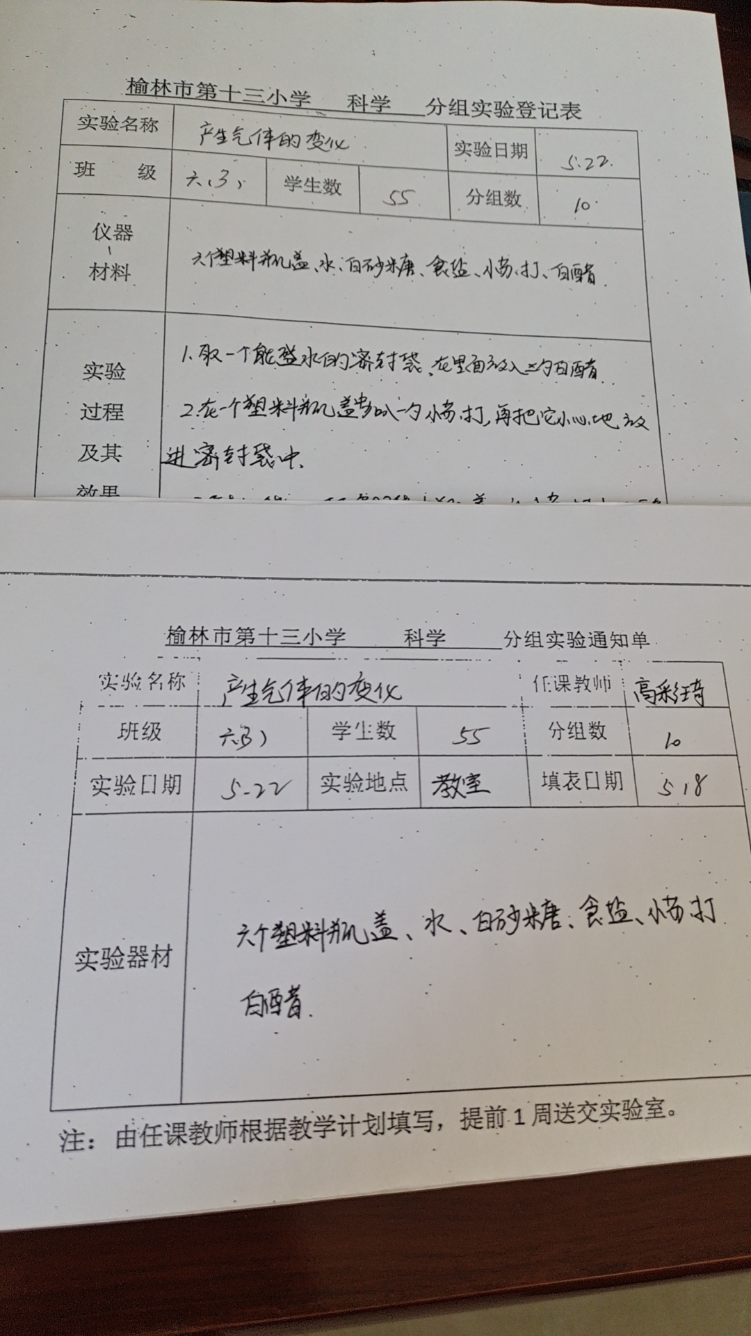 实验登记表