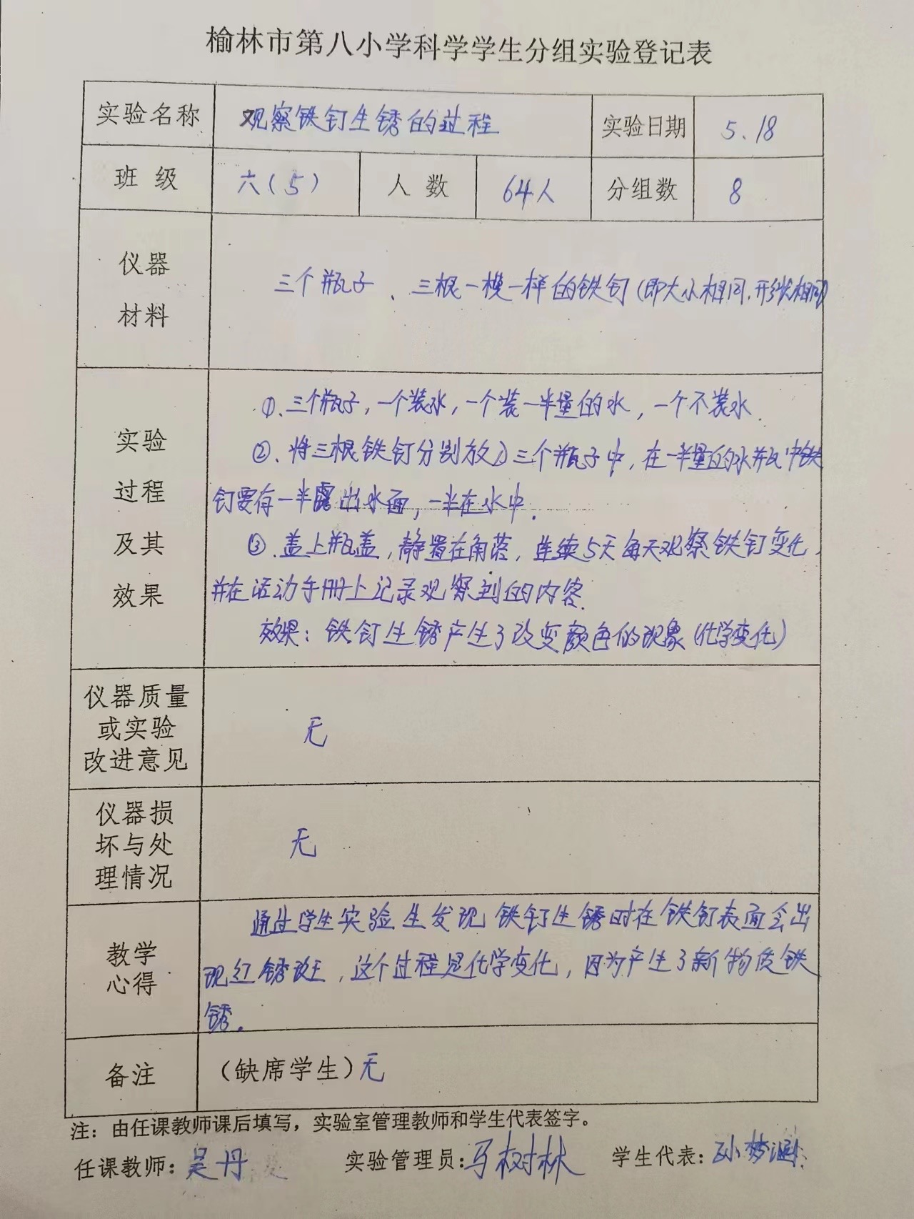 实验登记表