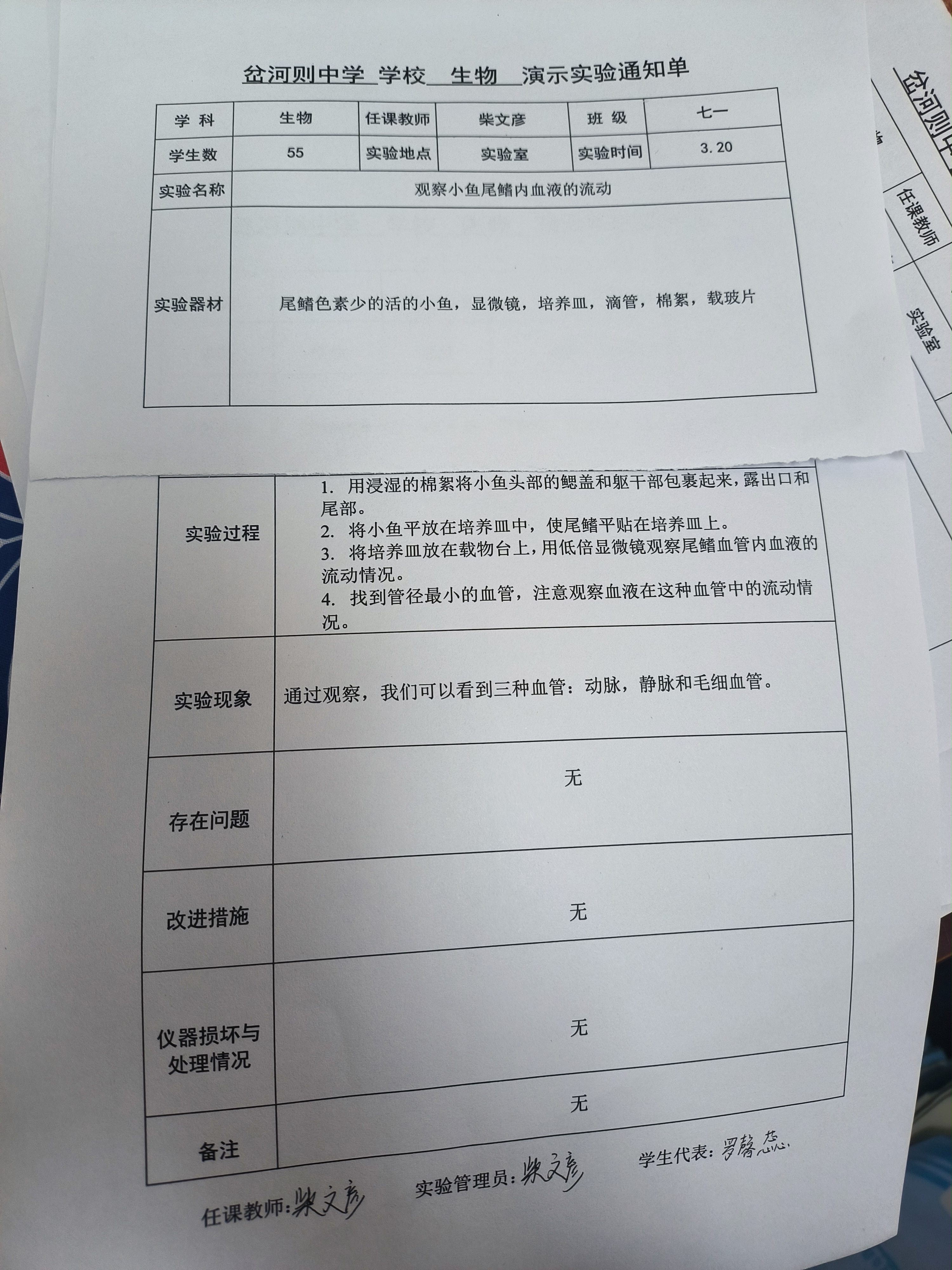 实验登记表