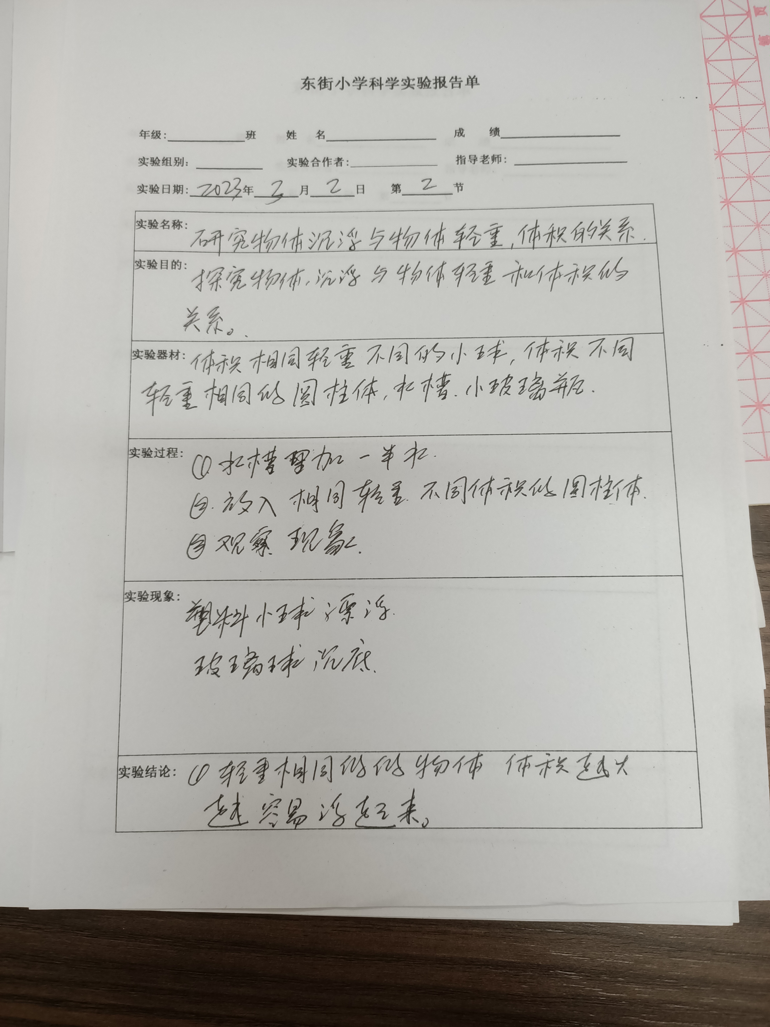 下册-第一章>第二节>1.2研究物体沉浮与物体轻重、体积的关系