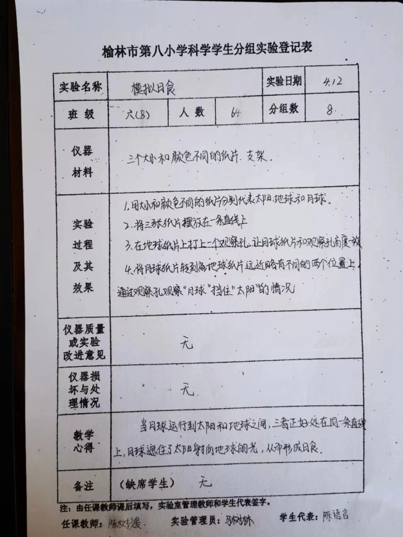 实验登记表
