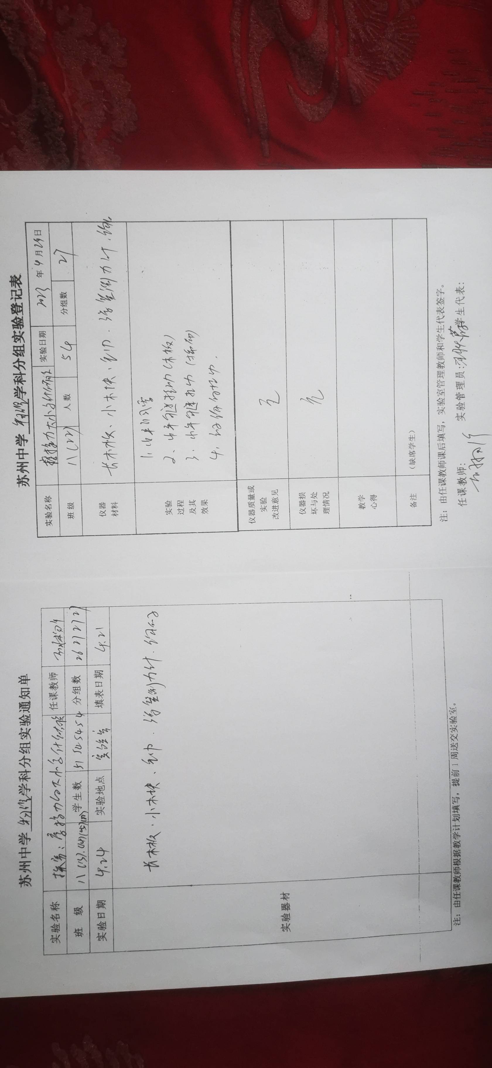实验登记表