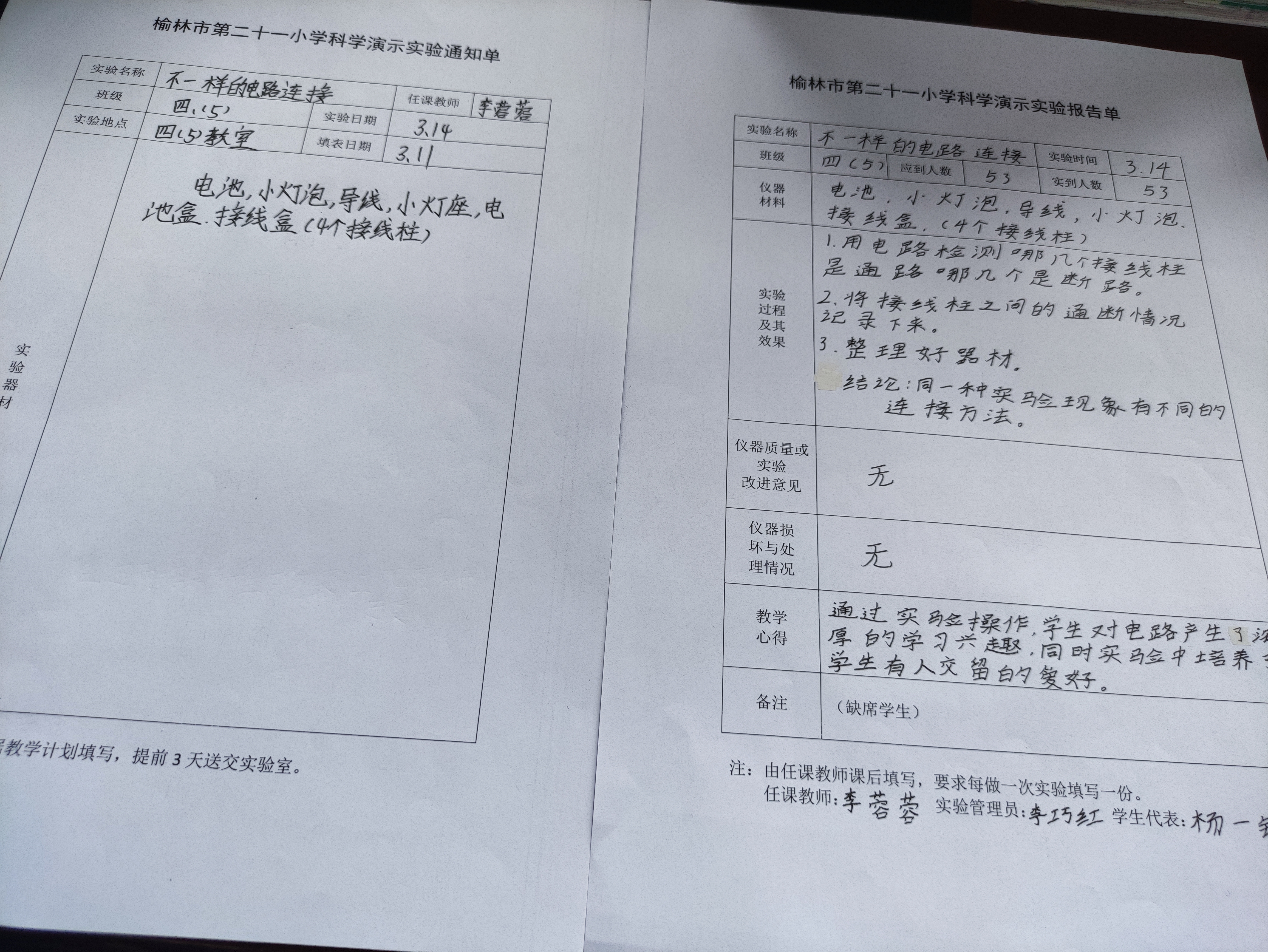 实验登记表
