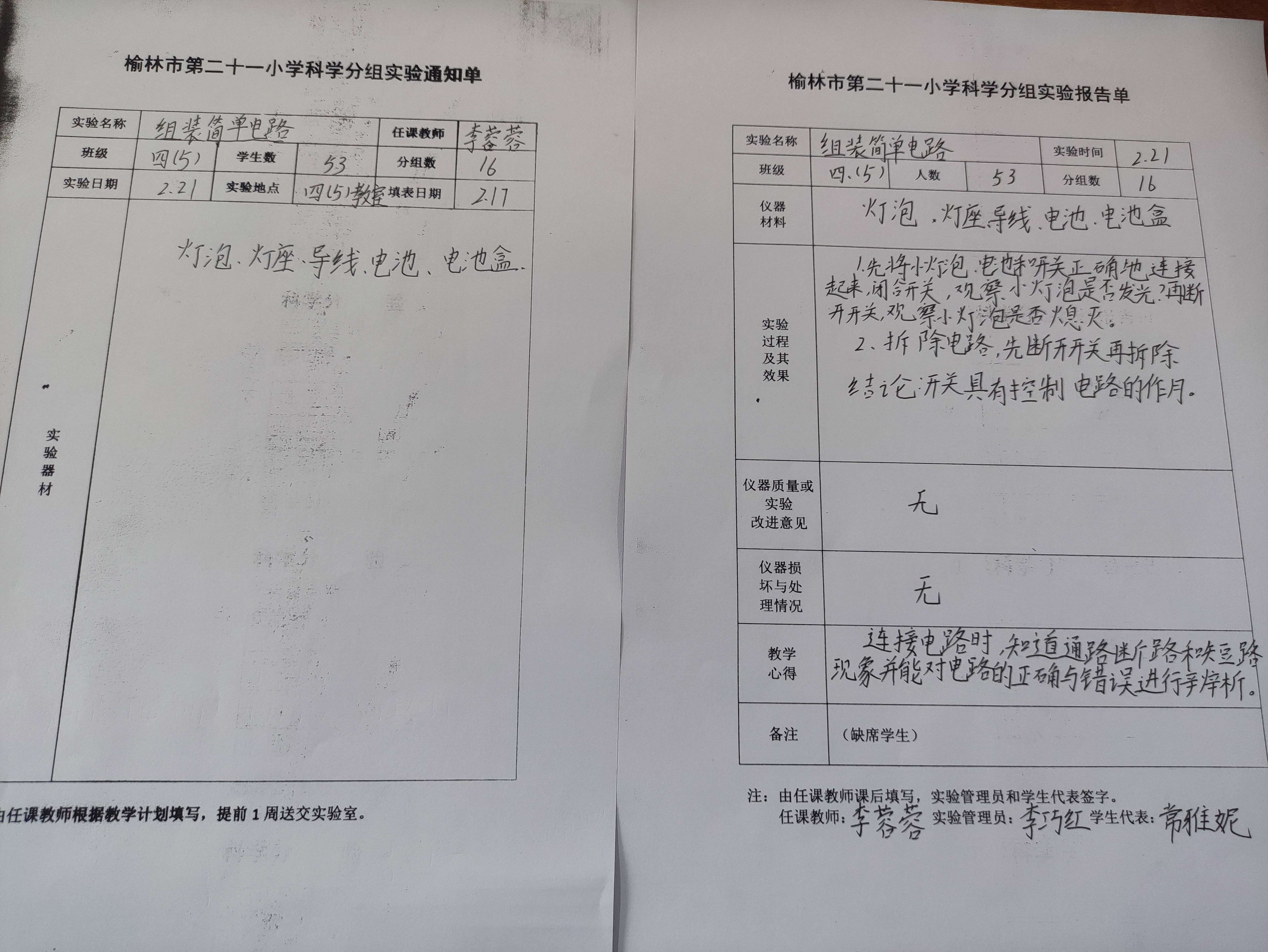 实验登记表