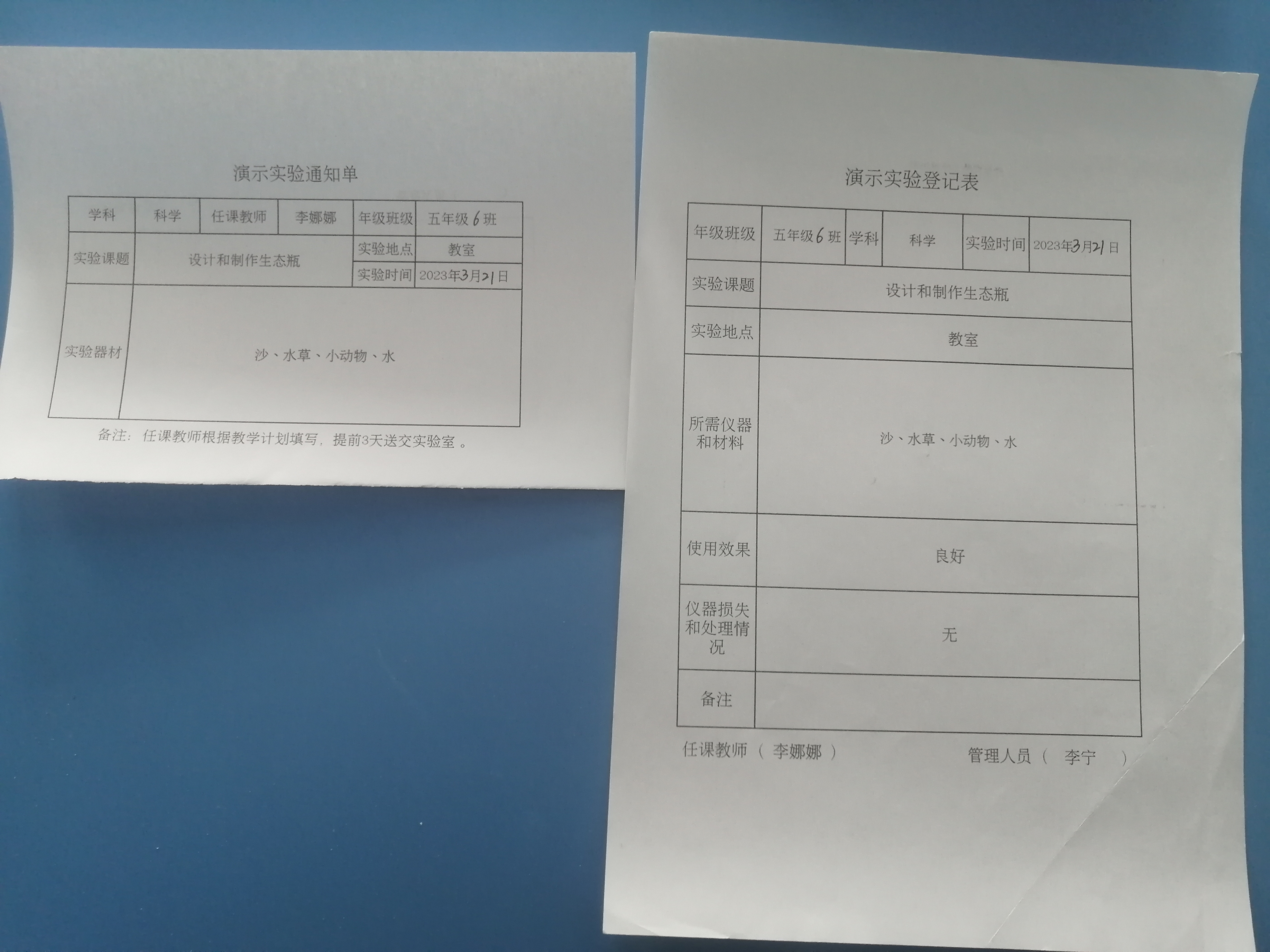 实验登记表